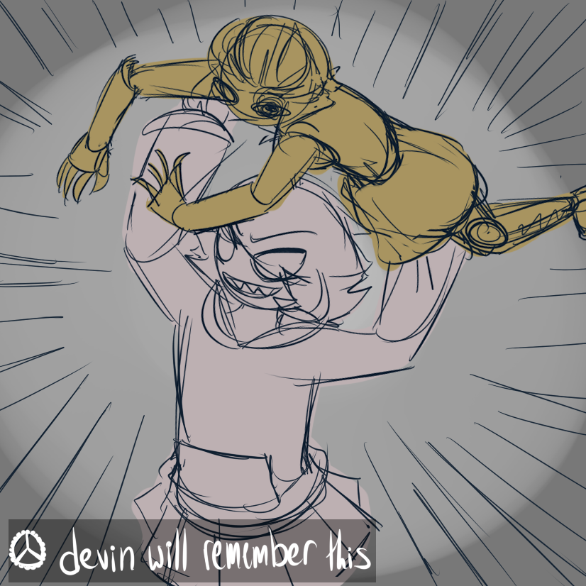 You start to panic trying to figure out what to do, but at the last minute you decide to make a dash to Devin, hoping the devil didn't see you.