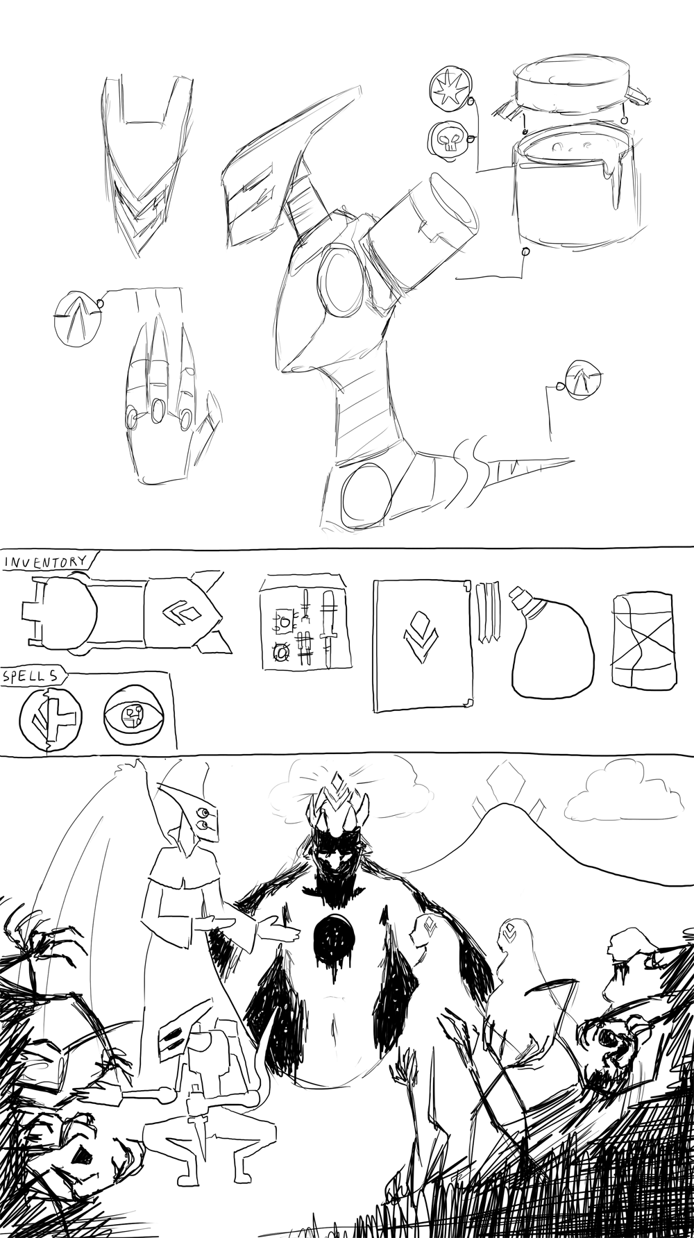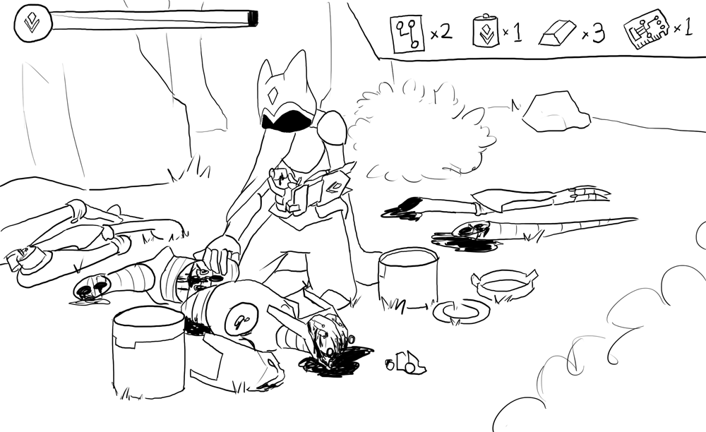 In addition to your gauntlet, you are equipped with a set of arcane scribing tools, in case you decide to craft, upgrade, or repair any relics with any magical components you scavenge on your journey. You have some water, trail rations, and a firestarter as well. You know that many prior paladins have had to pack bedrolls and the like, but your particular manifestation of the Mother's blood allows you to stay awake indefinitely.