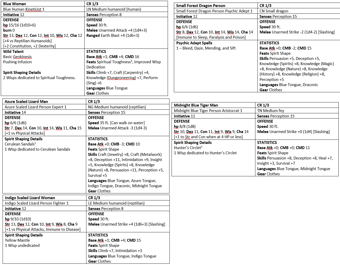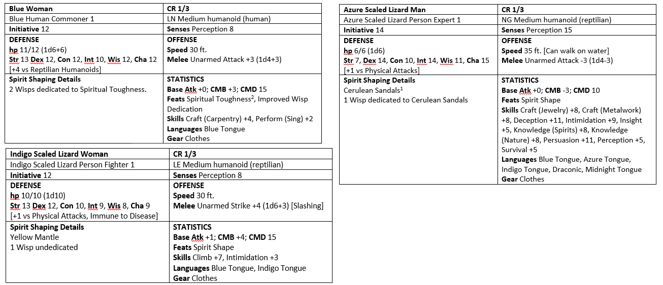 One pilgram is an indigo scaled lizard woman.