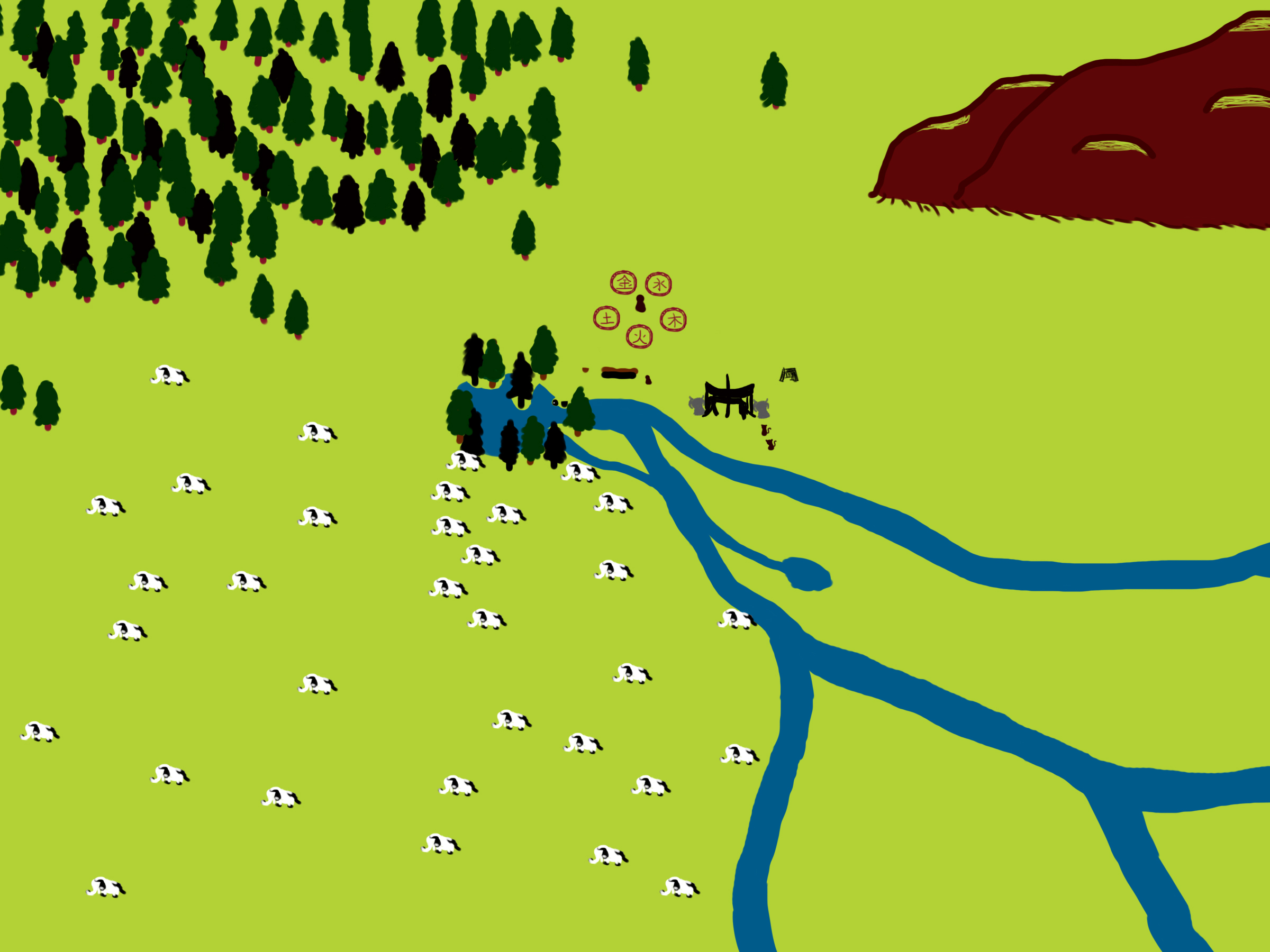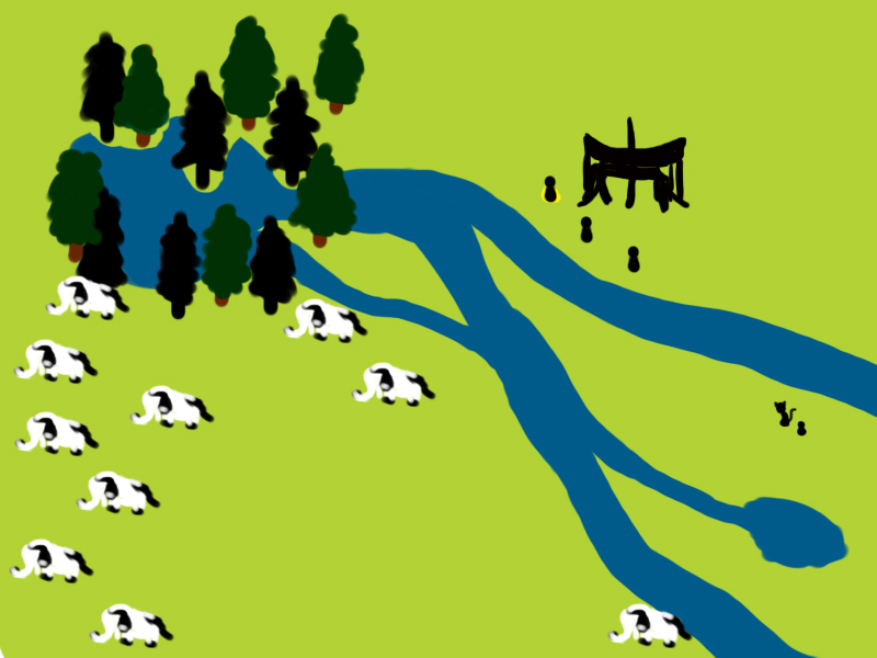 Xun patrols the parameter. (Perception 15 - Success). Xun reports back the bandits have been fishing, much to Suraj's surprise.