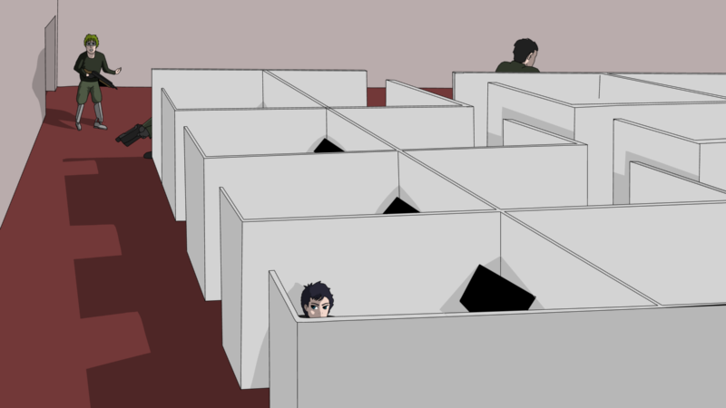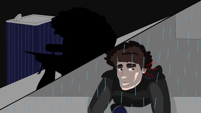 Overlooking the Nachigawa building, a man stares, unmoving, down the scope of a long distance rife. He blinks, for the first time in over that same hour, as water droplets begin to fall, obscuring his view.