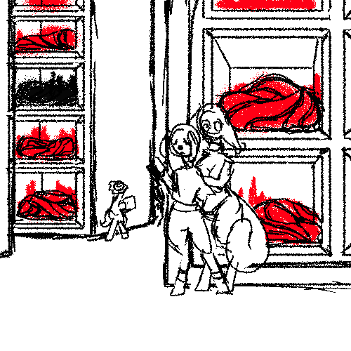 “Could work.” Dwayne thinks about it. “Yeah, could work. You’re right in that we’ll have to book it to make it worth it, but it’s safer than cutting directly across the floor, especially if Vivi takes out the control room on her own way out.”