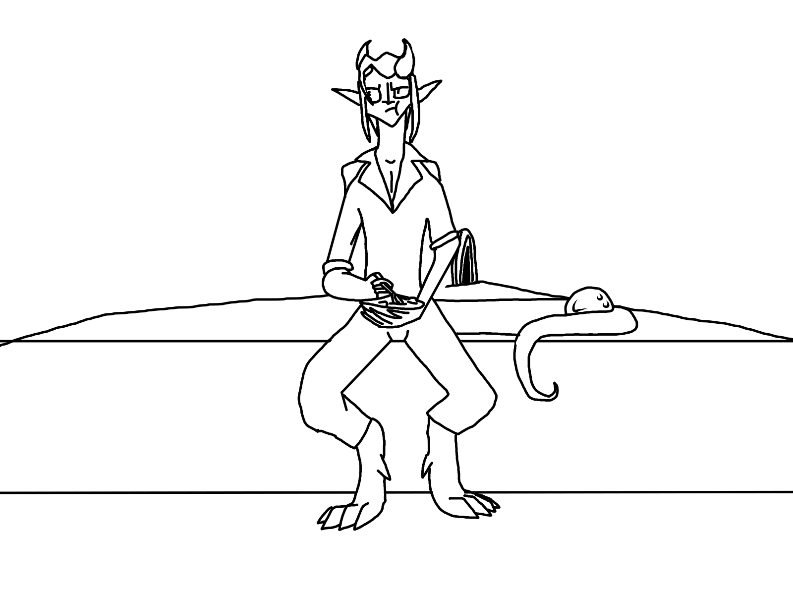 Rumor has is that he can shape-shift (a trait that if any other demon exhibits, he ritualistically sacrifices them and takes the rest of their powers and adds it to his own abilities, killing the other poor soul in the process.) and that he’s got a writhing mass of snakes instead of genitals. I don’t think I’ll ask him that if I got the chance. He has feathery wings, long claws, and a whiplike tail. He’s also cold, calculating, fond of cruel and unusual punishment for those on his bad side, and has just a general disdain for everybody. We all hate him, but those who try to kill him mysteriously vanish. He’s fear throughout all of Hell, and His name usually comes as a harbinger to bad news. His policies are strict, and he’s over-all not a fun guy.