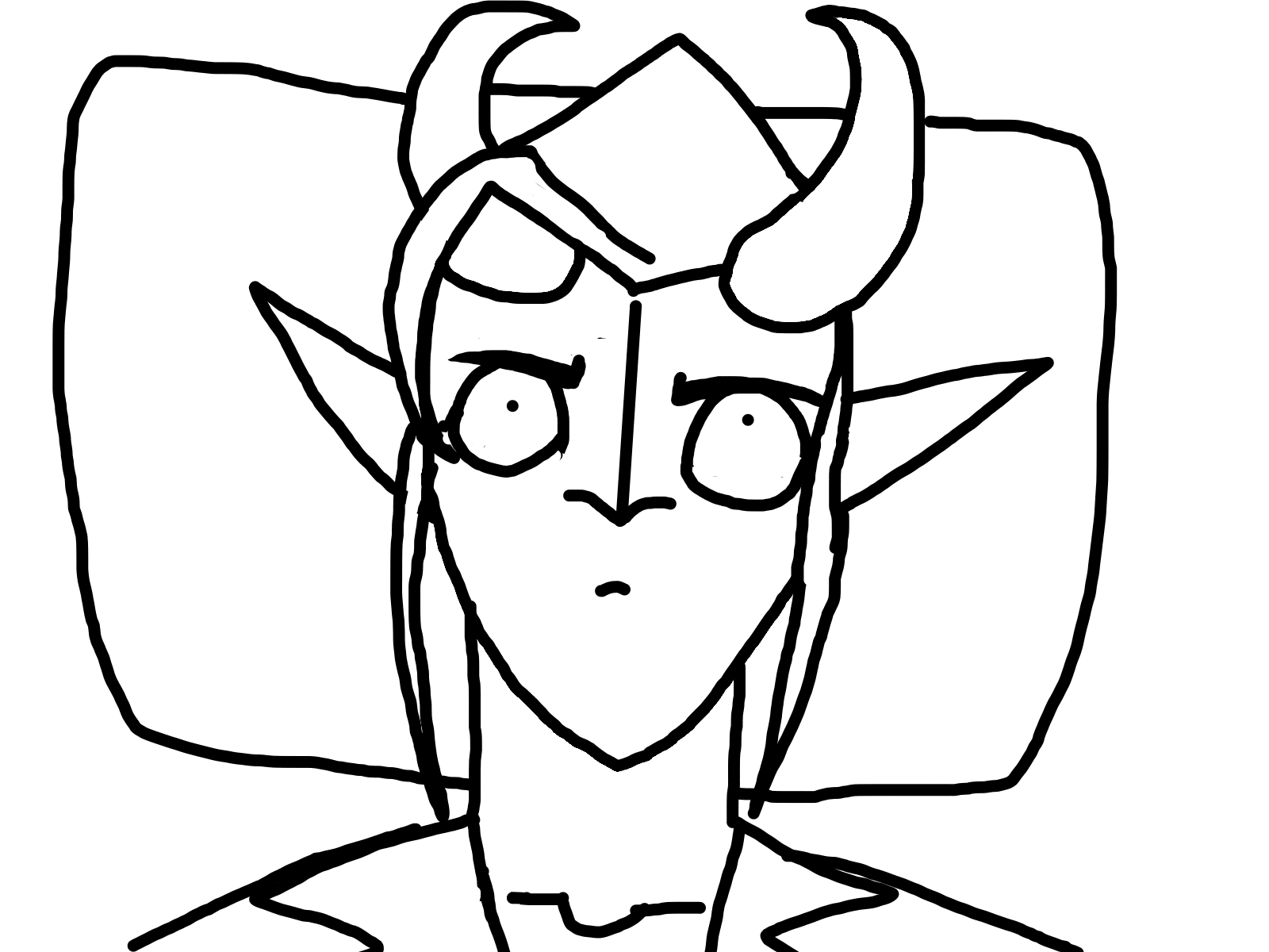 Dedrin: Oh, right, our king. Well, Here, I drew a picture of him. This is Lord Baphomet, our current King. He took the throne a couple years back and has been ruling us with an iron fist ever since. Here in Hell, to be king, you either have the title passed to you, or you take it by force or slight.