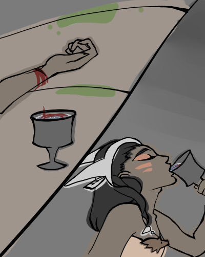 "Where did you go little morsel? You go to all the trouble of spilling blood and you don't even share any with me? That's hardly fair, is it? Come out come out, wherever you are!"