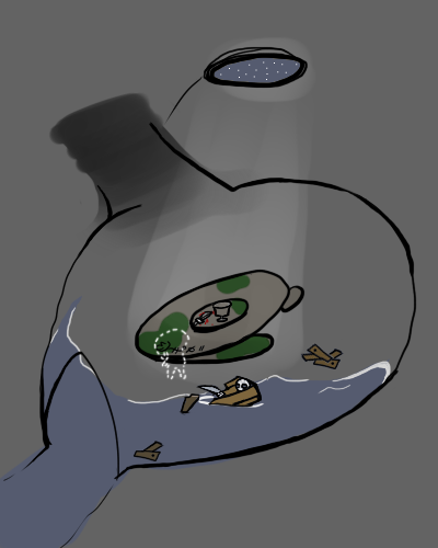 "Oh! So you've escaped from The Ghostsea! That's quite an accomplishment! We haven't seen a soul from there since before the war. Maybe We can do something to fix that, if We get around to it.