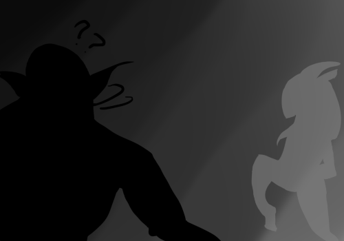 You've never been this close to something so monstrous before. Spirits and gods are one thing, but this troll is a fair bit more corporeal than you're used to dealing with. Her matted fur smells like wet dog, her breath like carrion. You're distracted momentarily when a glint of her teeth catch the light. She has amouth full of messy black-green things designed to crush bones, each as long and slender as your finger if they're an inch. Your pulse quickens, you struggle to keep your breathing quiet, but it feels heavy in your chest.