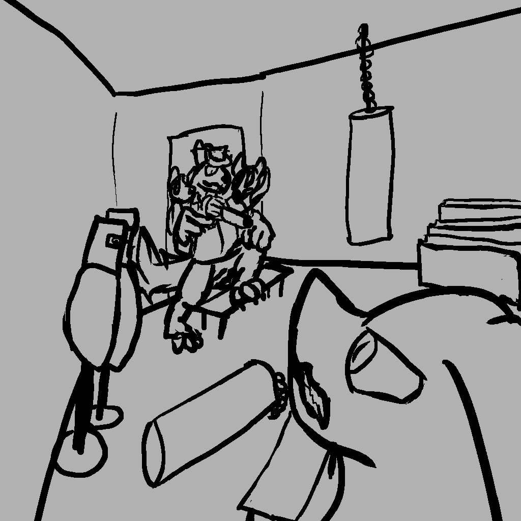 The spirit hasn't arrived yet, so you take a moment to take stock of your surroundings. There doesn't look like there's an awful lot you can use. A few benches are bolted to the ground, but with your enhanced strength that poses no problem. A railroad sign sits near the track of the recently-derailed train, which could probably make a good bludgeon.