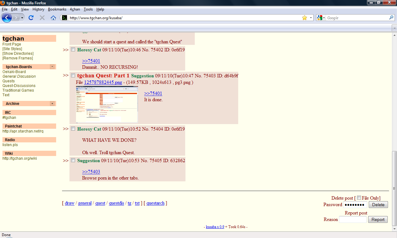 We should start a quest and called the "tgchan Quest"