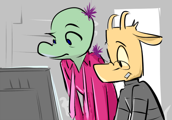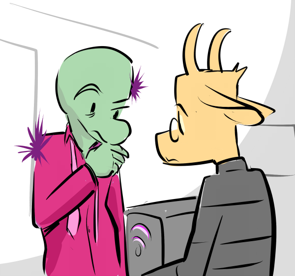 >"Complcated? Does it have anything to do with the 'alien ghost computer' mentioned earlier? Also, dude, don't be rude... care to introduce our guest?"