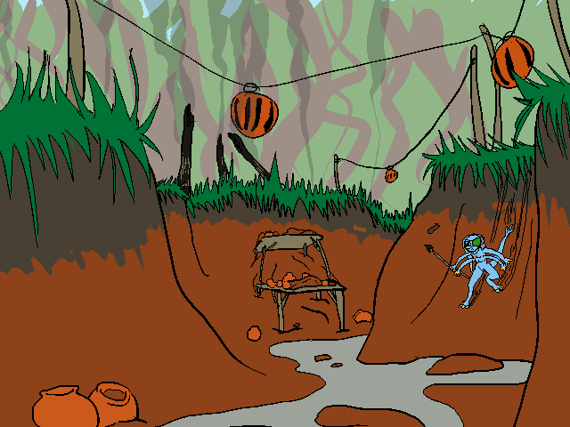 >looks like their might be something in the bushes behind you. Better make sure you have a good grip on your spear so you don't have it stolen from you.