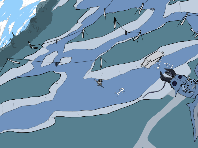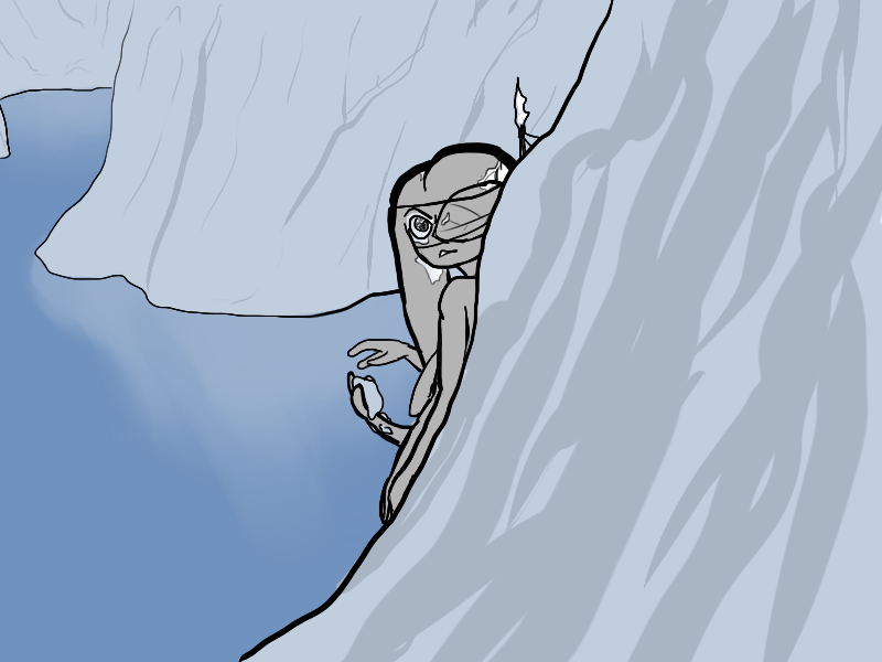 As they begin their search, I do my best to remain out of sight. The archer, however, notices my footprints leading down the slizer's back after climbing up. For a moment, the relative silence is disturbed by a familiar whistling as slizer shudders again, weakly.