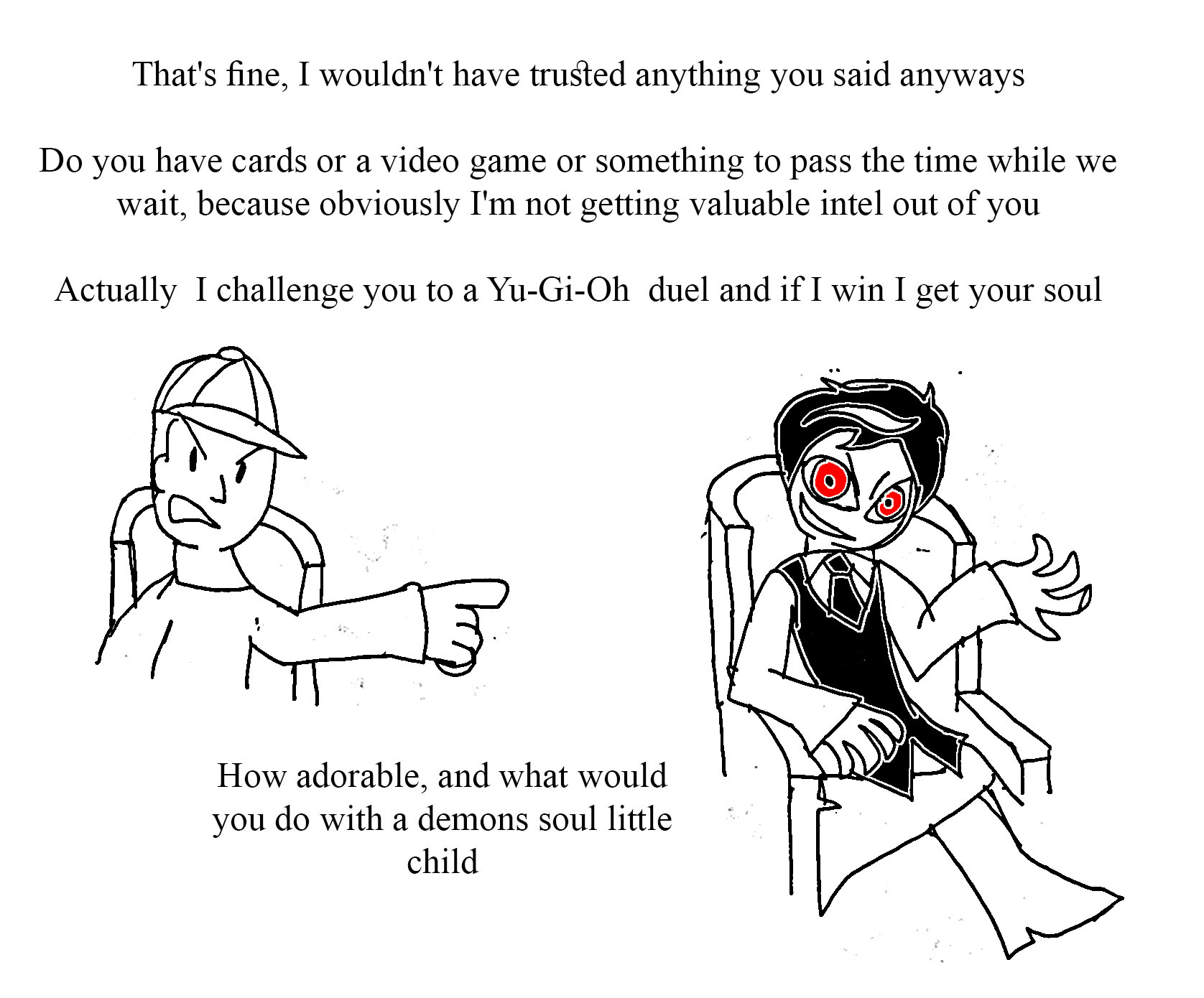 But if we need a game to pass the time, duel monsters is good. If you really want to piss him off you could always whip his ass in Mario kart, that would infuriate even a demon.