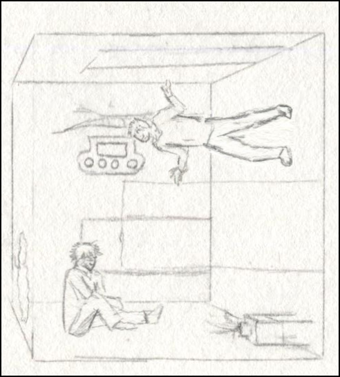 You bring him over to the rubble and see what you can gather from him. First and foremost, his name is Jon and he woke up when the lights came on in the cell. He seems to have more memories than you, remembering not only his name but a little of what happened before he got here. Some kind of recovery ward for surgery patients in a gigantic hospital. He doesn't remember being put in a padded cell though, and he can't explain why this is all underground.