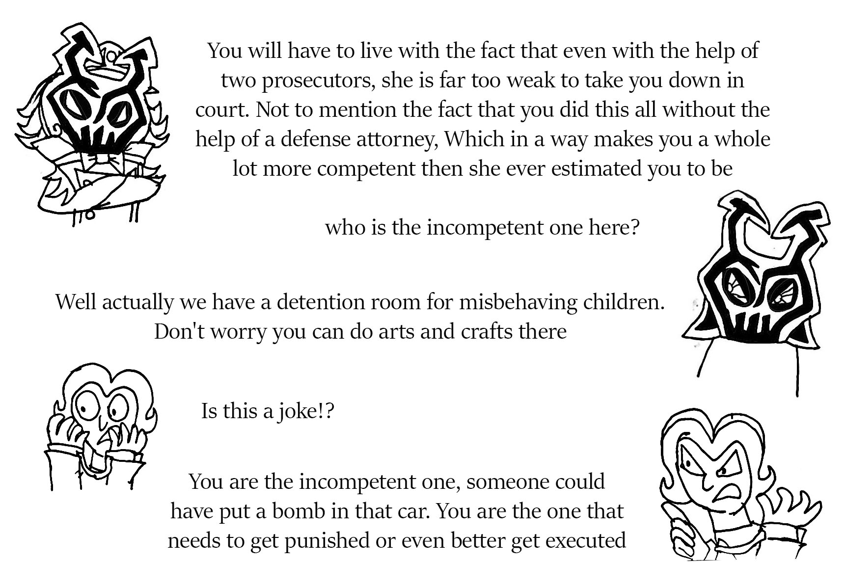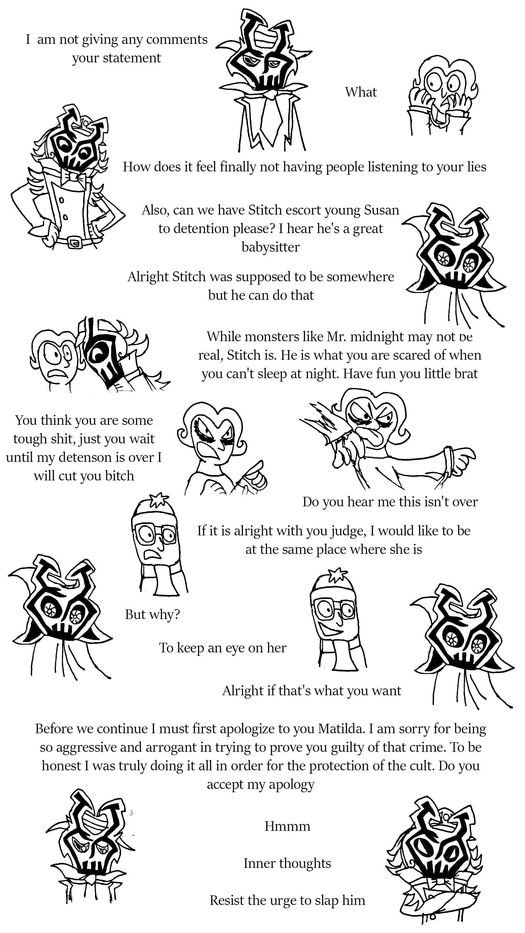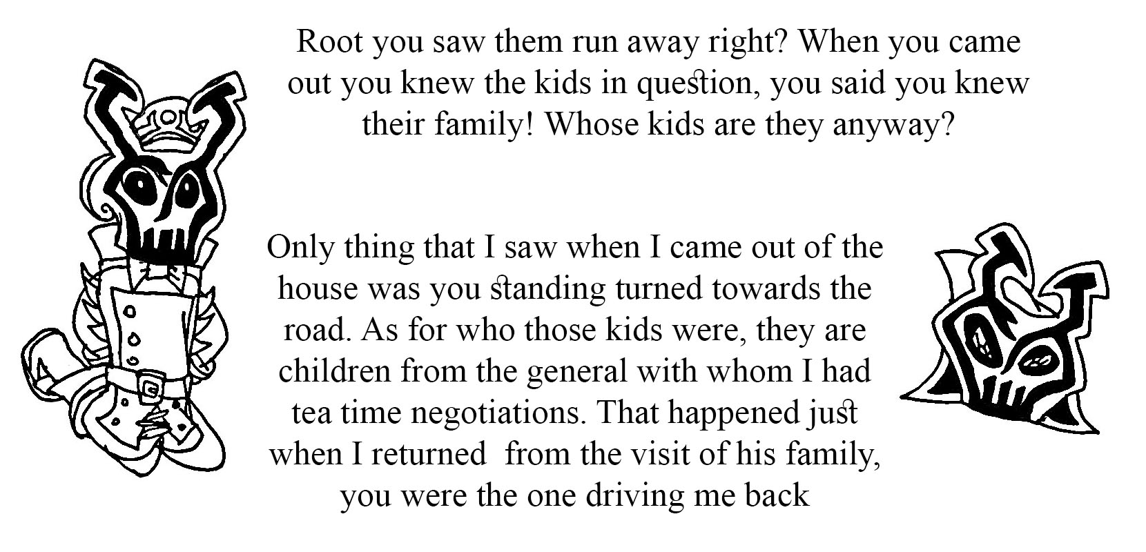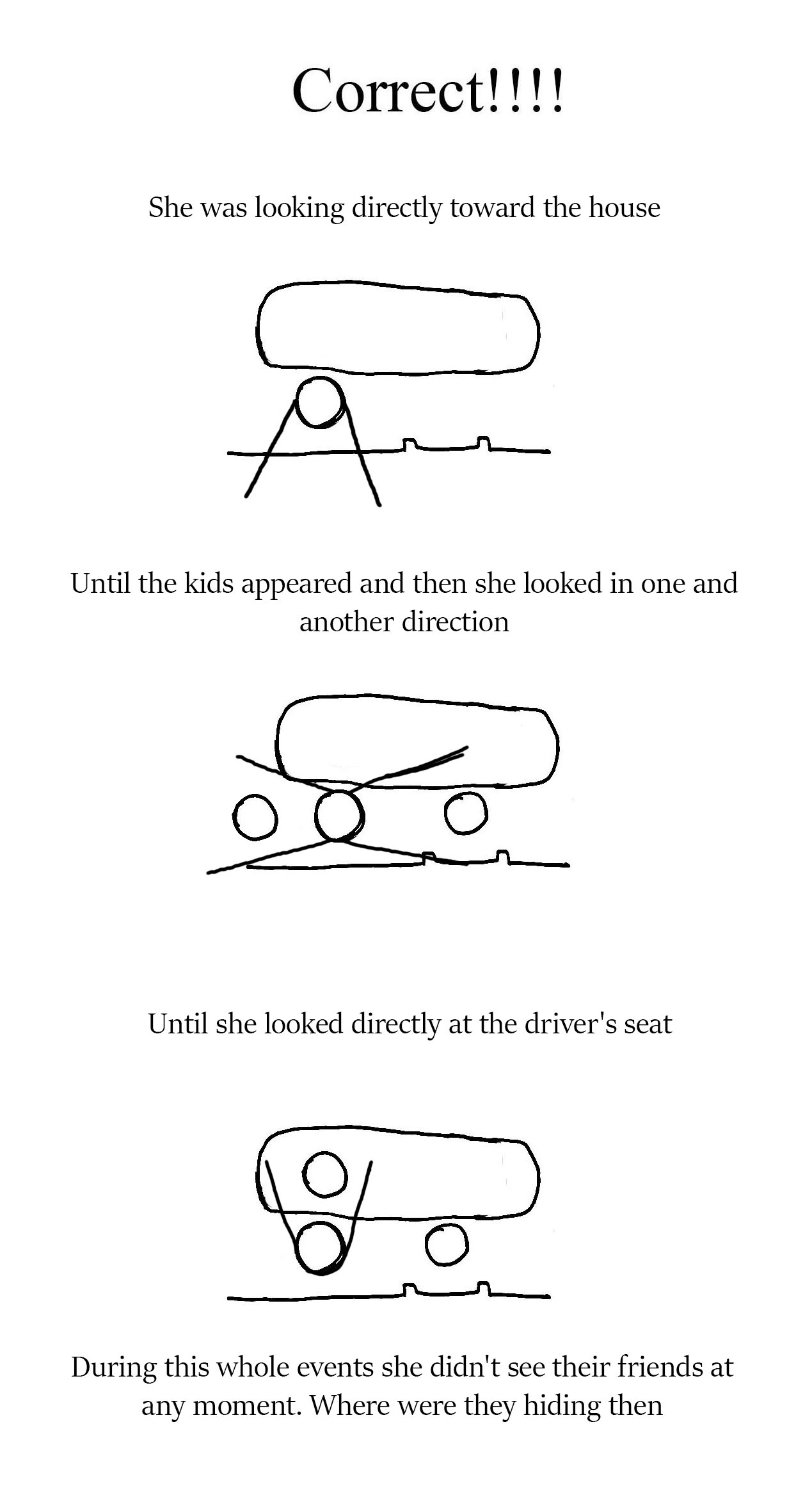 Then Root came out and he didn't see them only heard you screaming and laughter maybe? Then you the two of you got in the car and drove back to the compound.