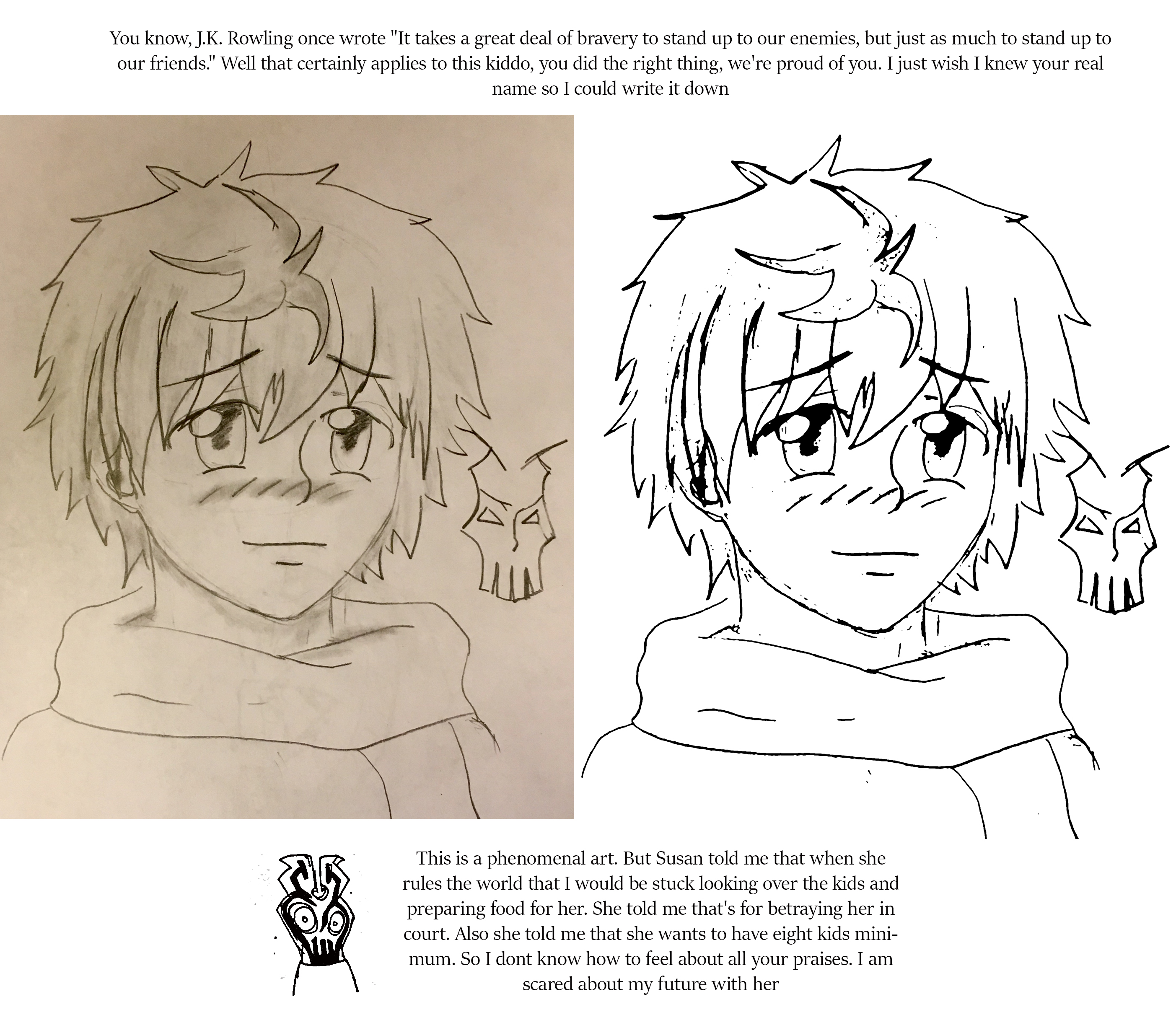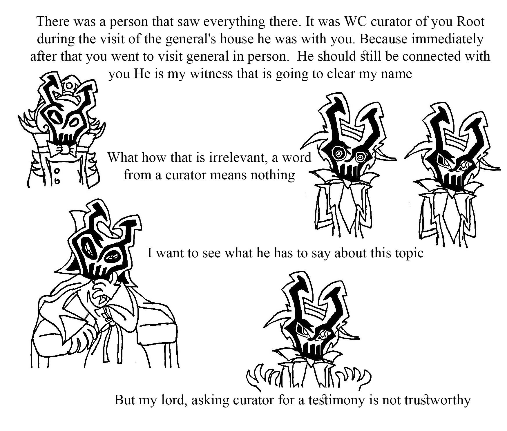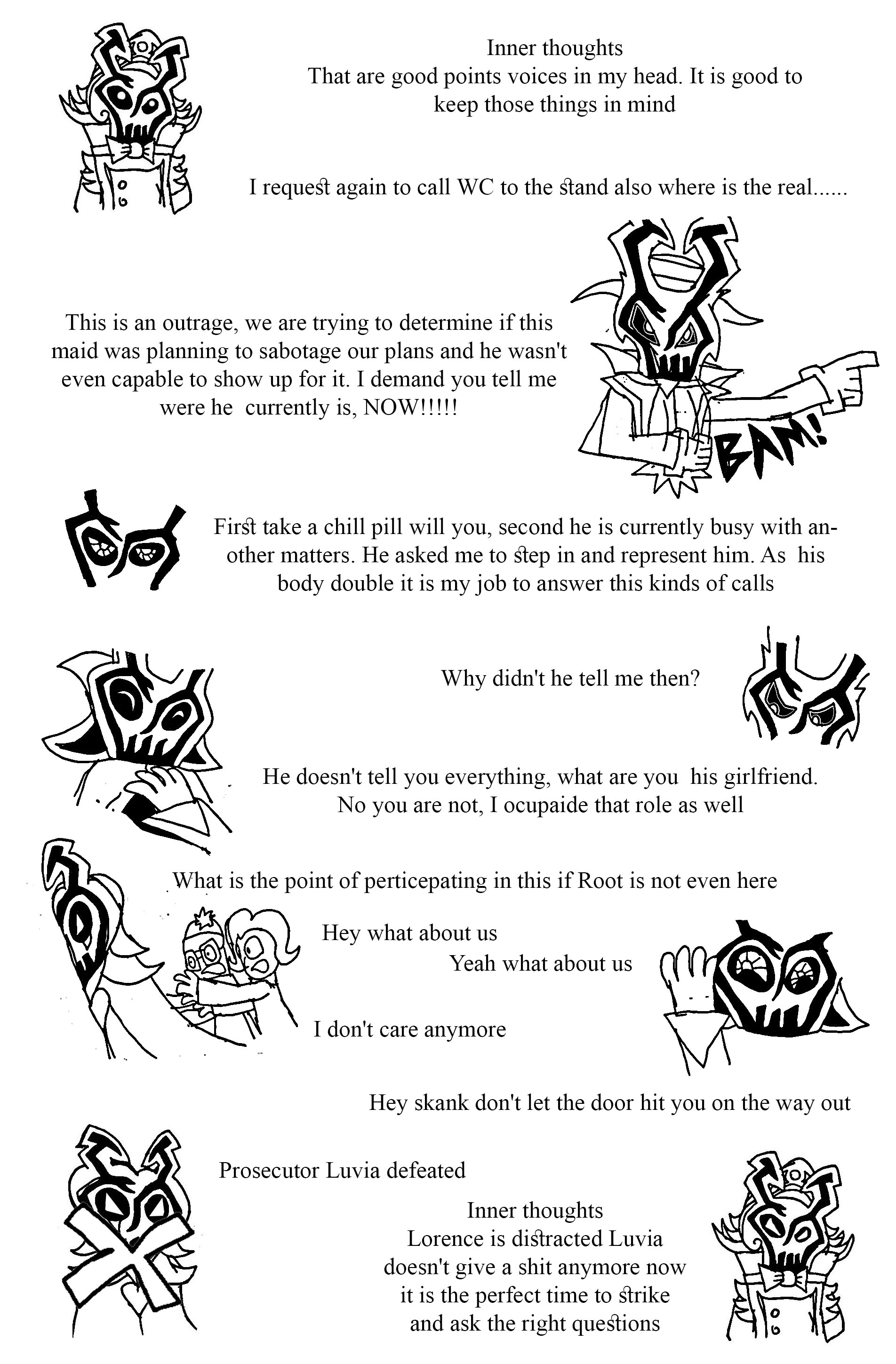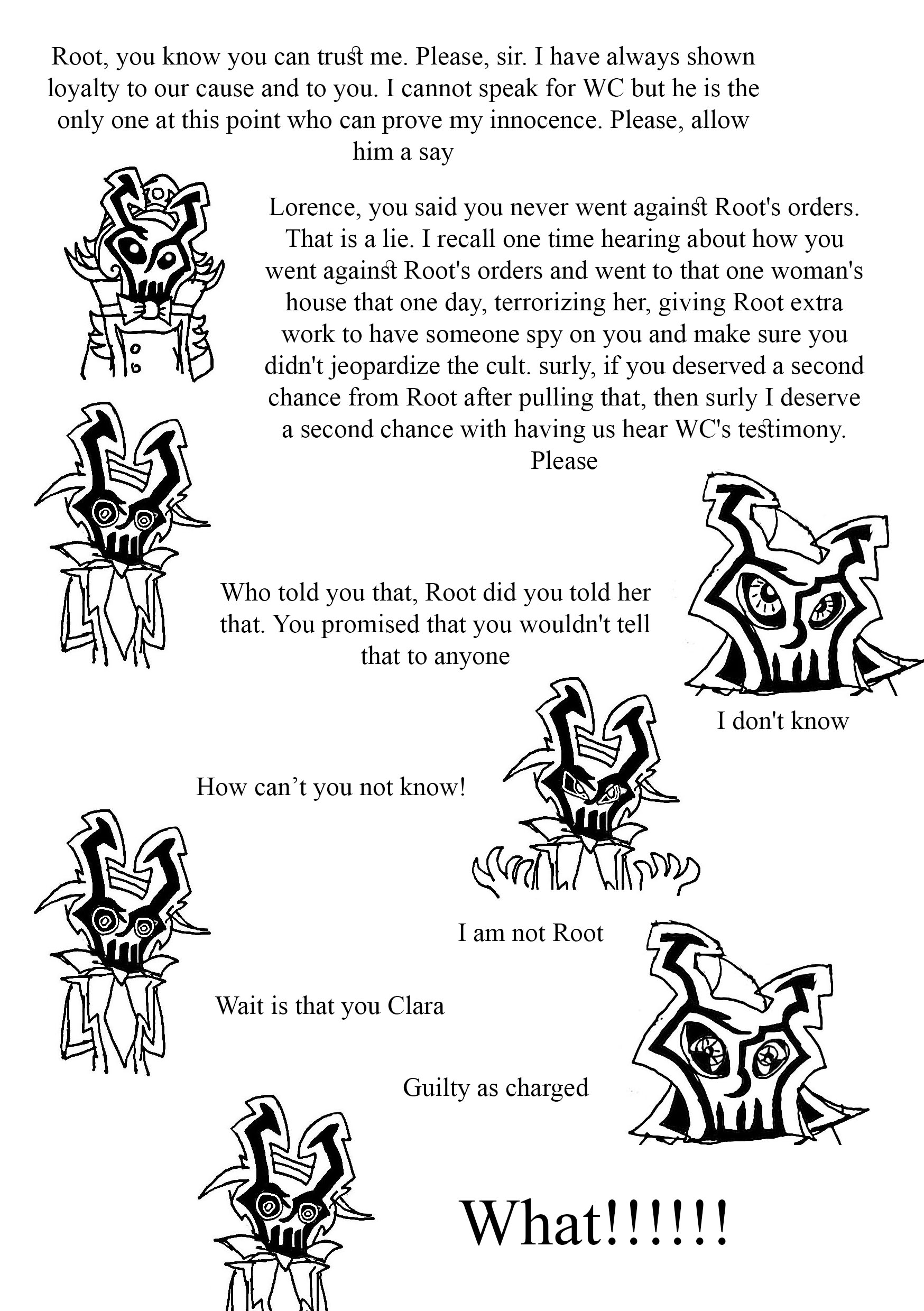 After that you were greeted by Lorence and Lazlo, Root went off to go plot the start of the siege. Lorence stayed behind just a bit to lecture Lazlo before heading off, so he could have heard the kids say "Surprise!" Maybe, maybe not.