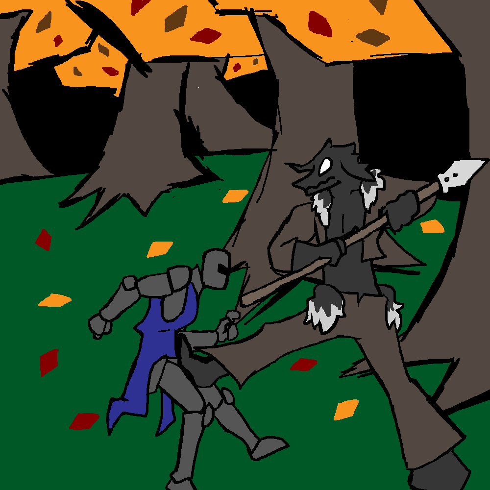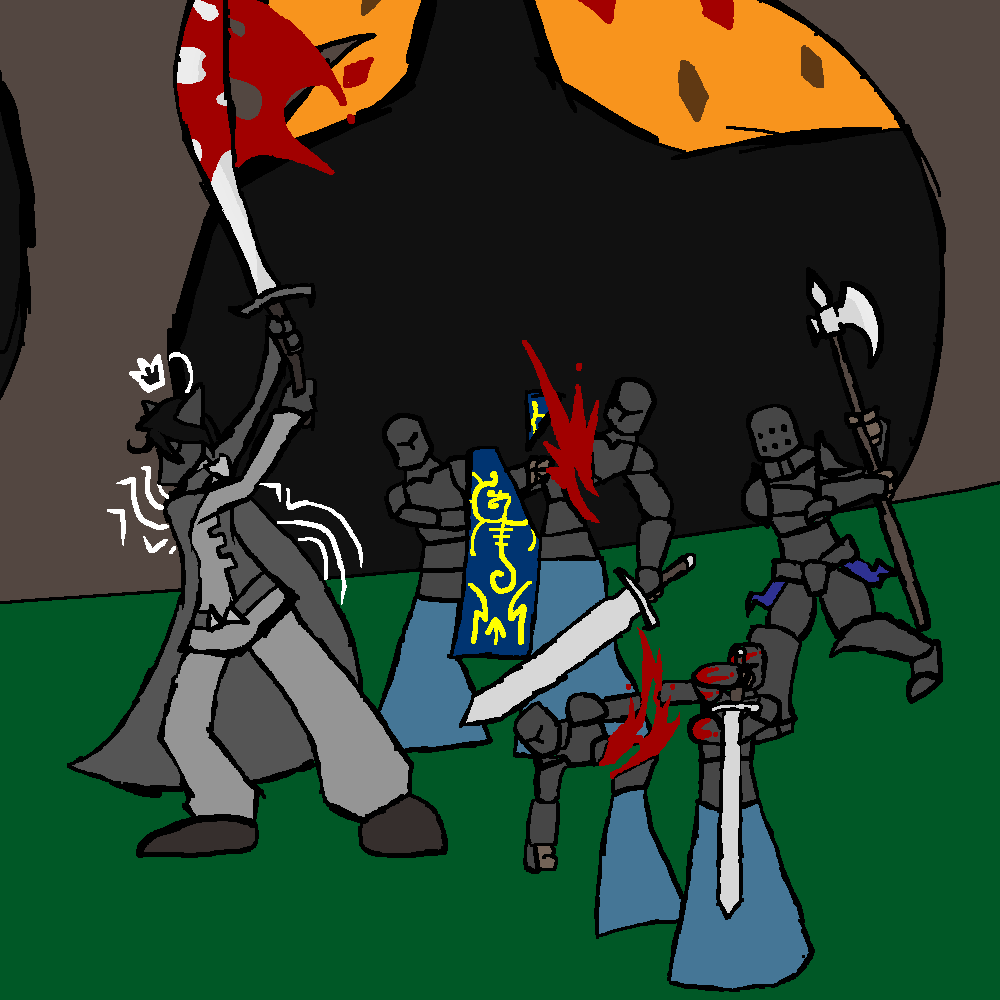 Suddenly the knight with the sword speaks up; "Stay back fool, you don't know what or who you are toying with. You'll regret it."