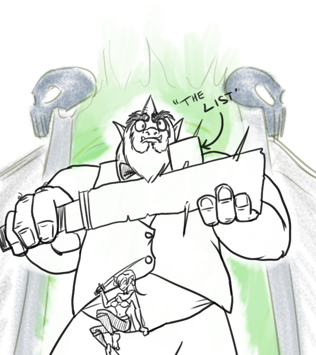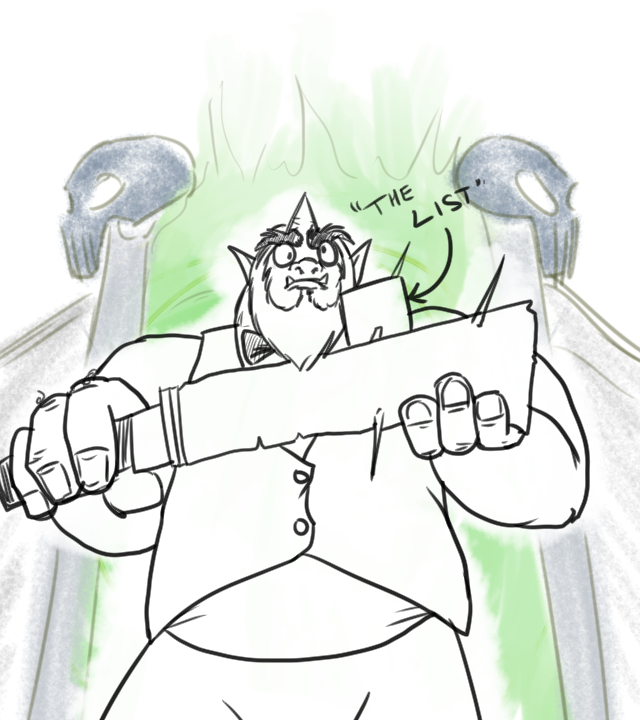 Spike: I bet Boris handles both! The magic shop replaces the cover charge and he turns anyone who causes trouble into a talking animal who then has to give directions, or run some of the lesser attractions or sell junk until they pay off the debt!