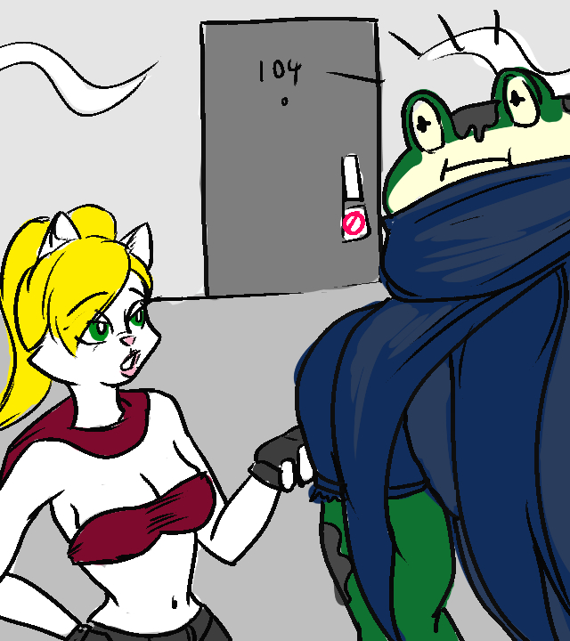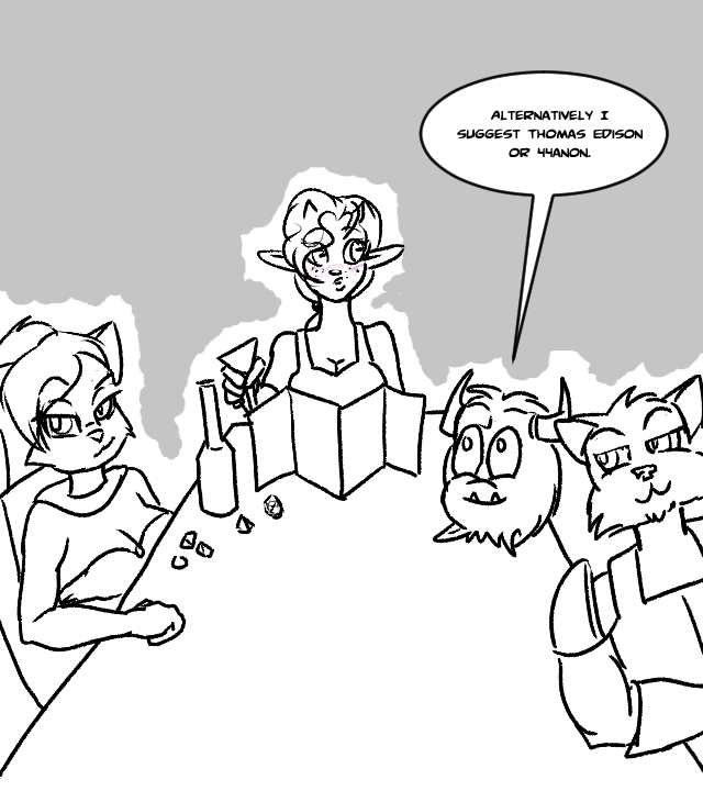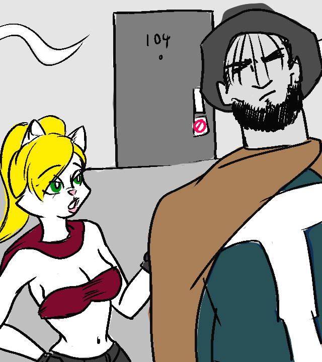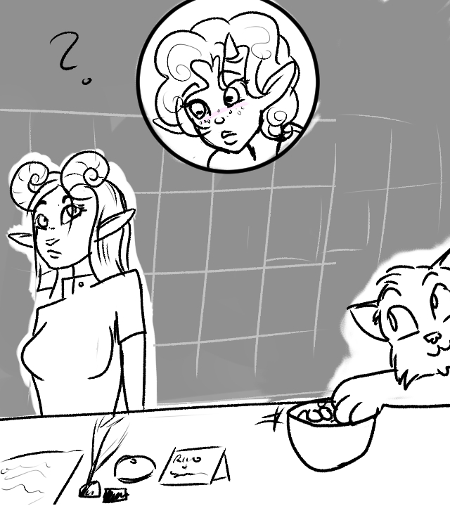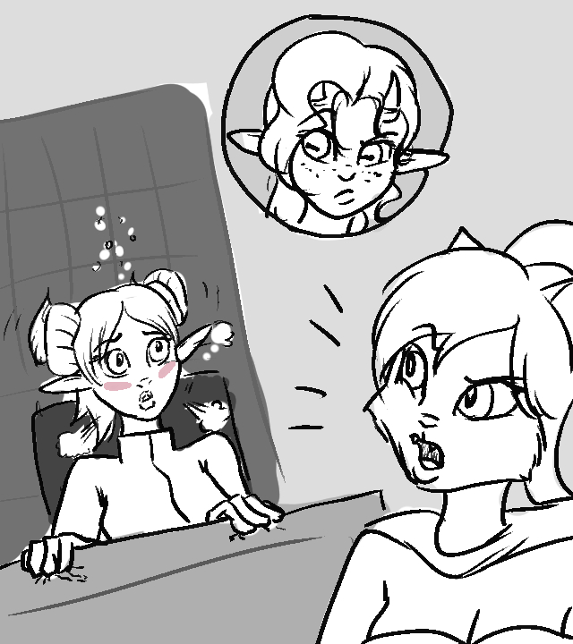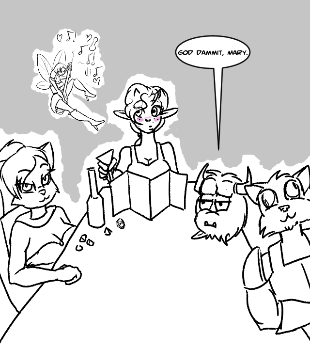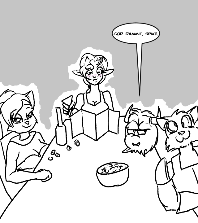 Kitty explains -- while covering the mouths of Spike & Mary -- of Bigleg's fate and the party's decision to take up his task.