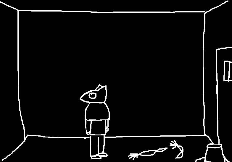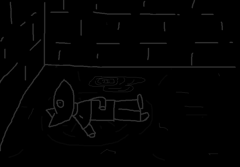 Something's on the ground on the other side of the room, where you woke up. Something darker than the ground around it? Looks like a symbol.