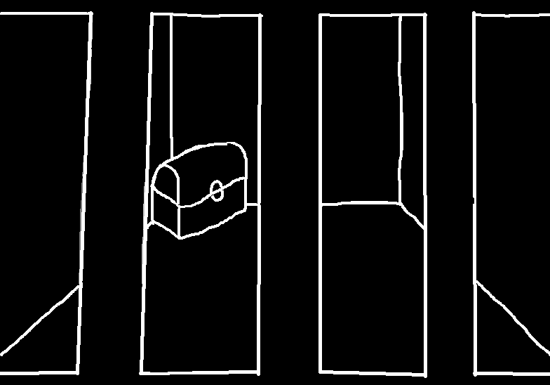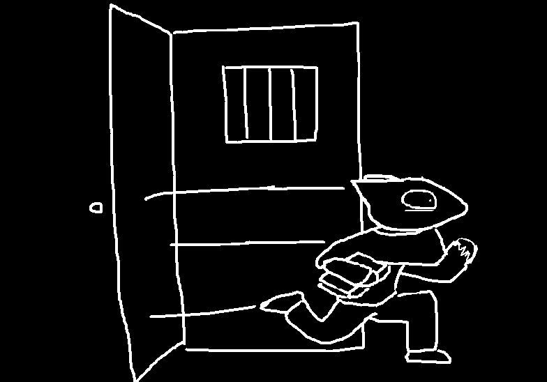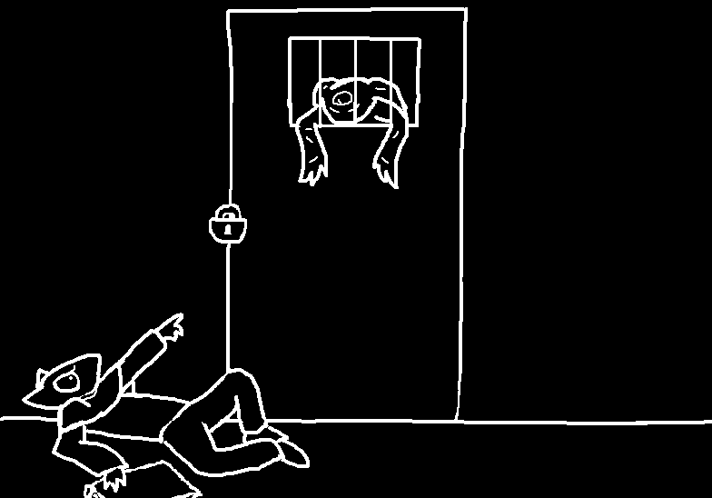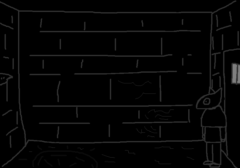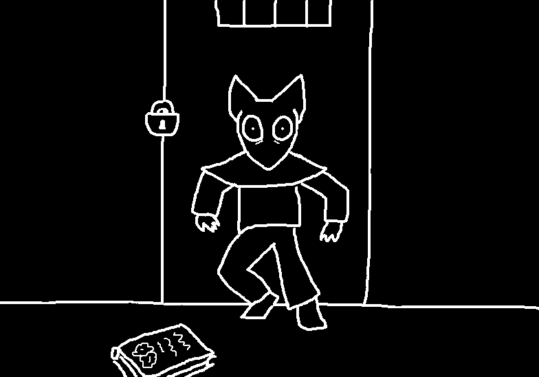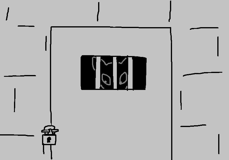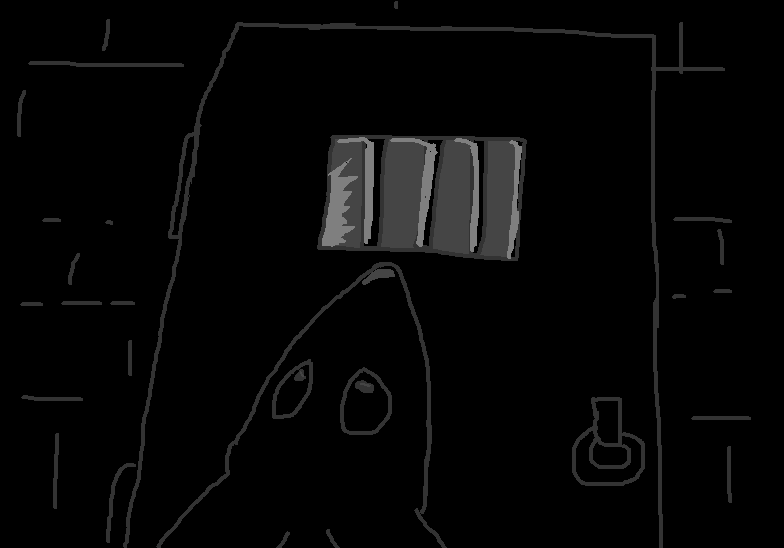 First, see if you can read what's scribbled on the wall. Then peek out the bars in the door.