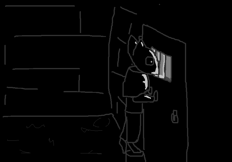 I push on the door a little to see if it is really locked. Then I try to pull on it. It doesn’t give either way.