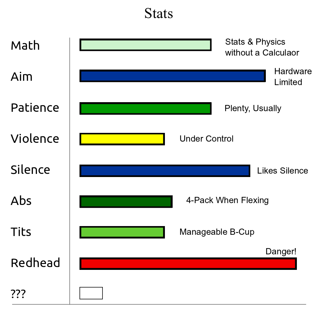 Oh thank fuck Truth is asking a question that isn't awkward. "When I'm not taking care of my gear or trying to learn new cooking and craft skills, I web surf, read stuff, try to continue my education, and every so often I play videogames or help, uhm, develop videogames, or, uhm... yeah." Why did you start to think about that? Stupid flirting.