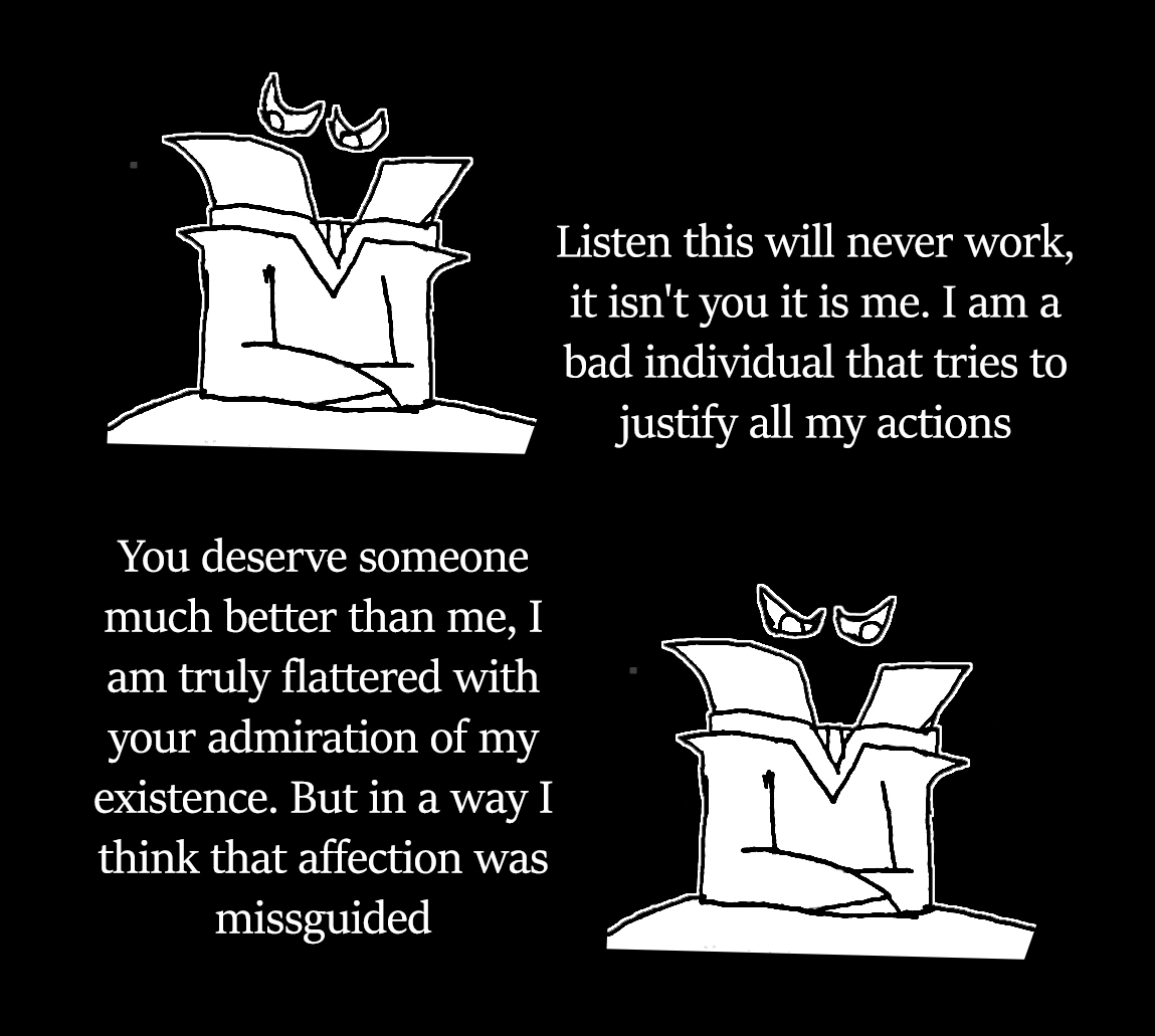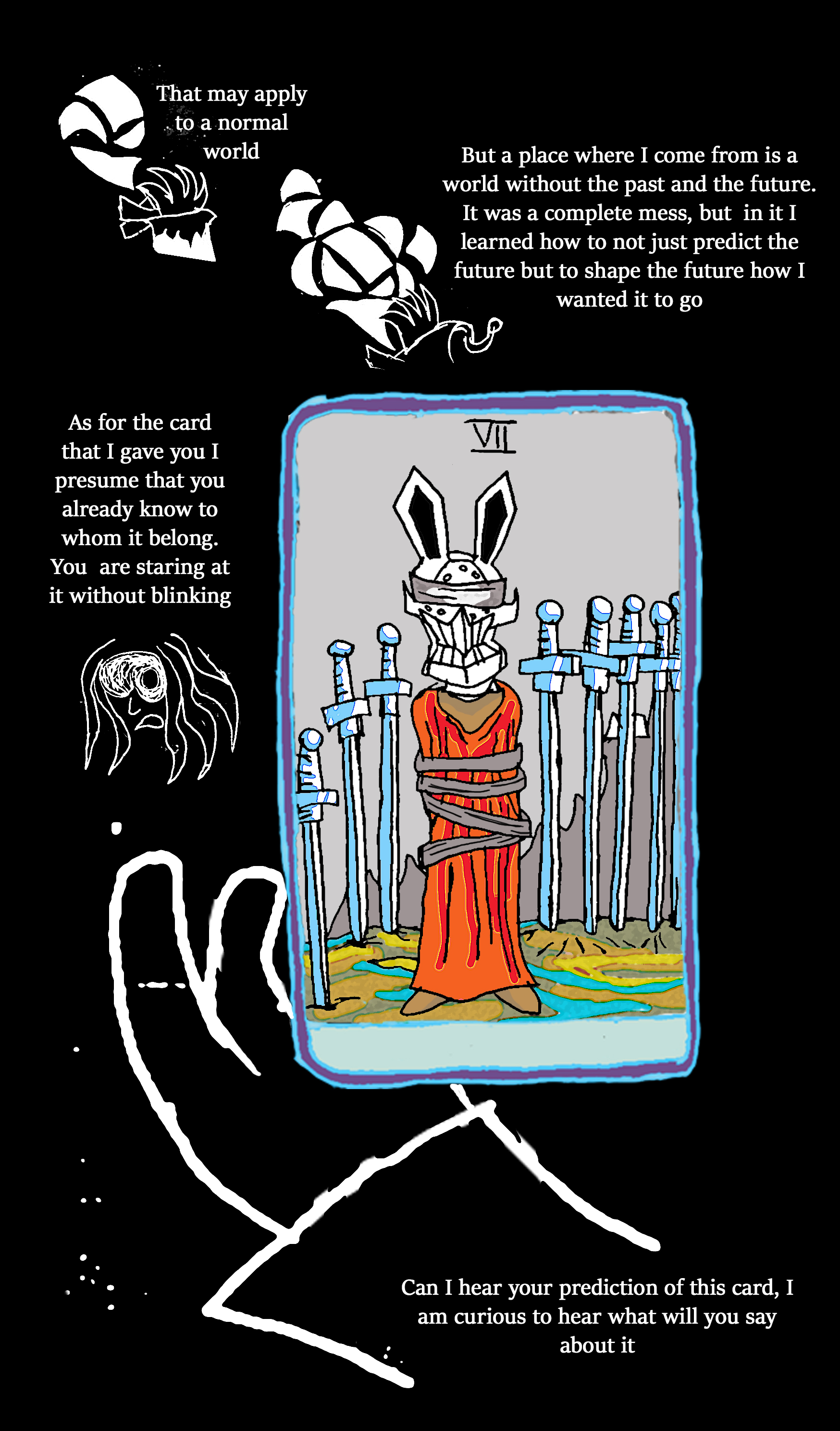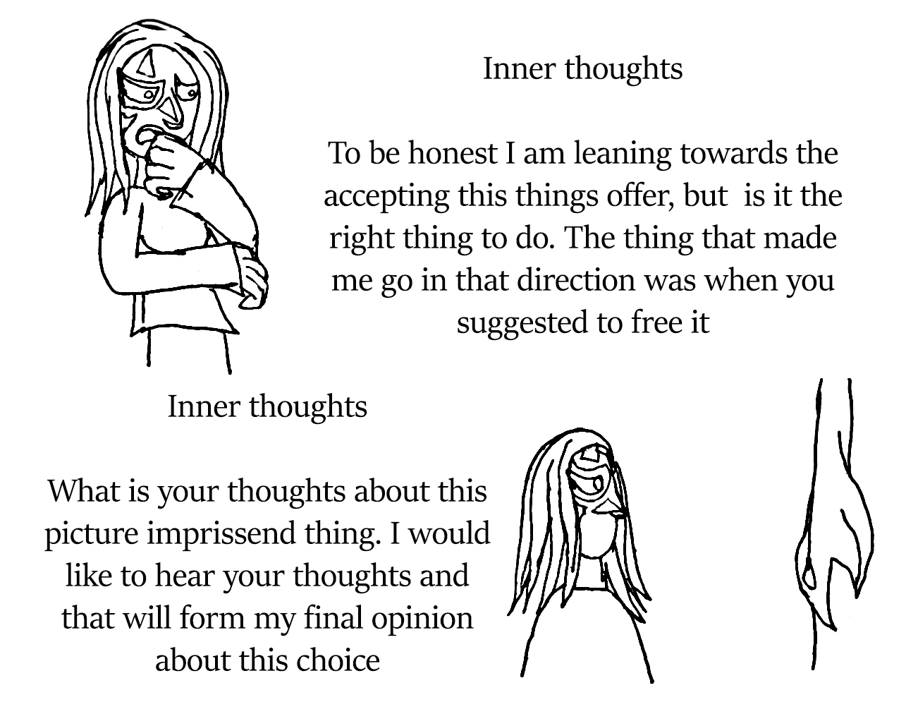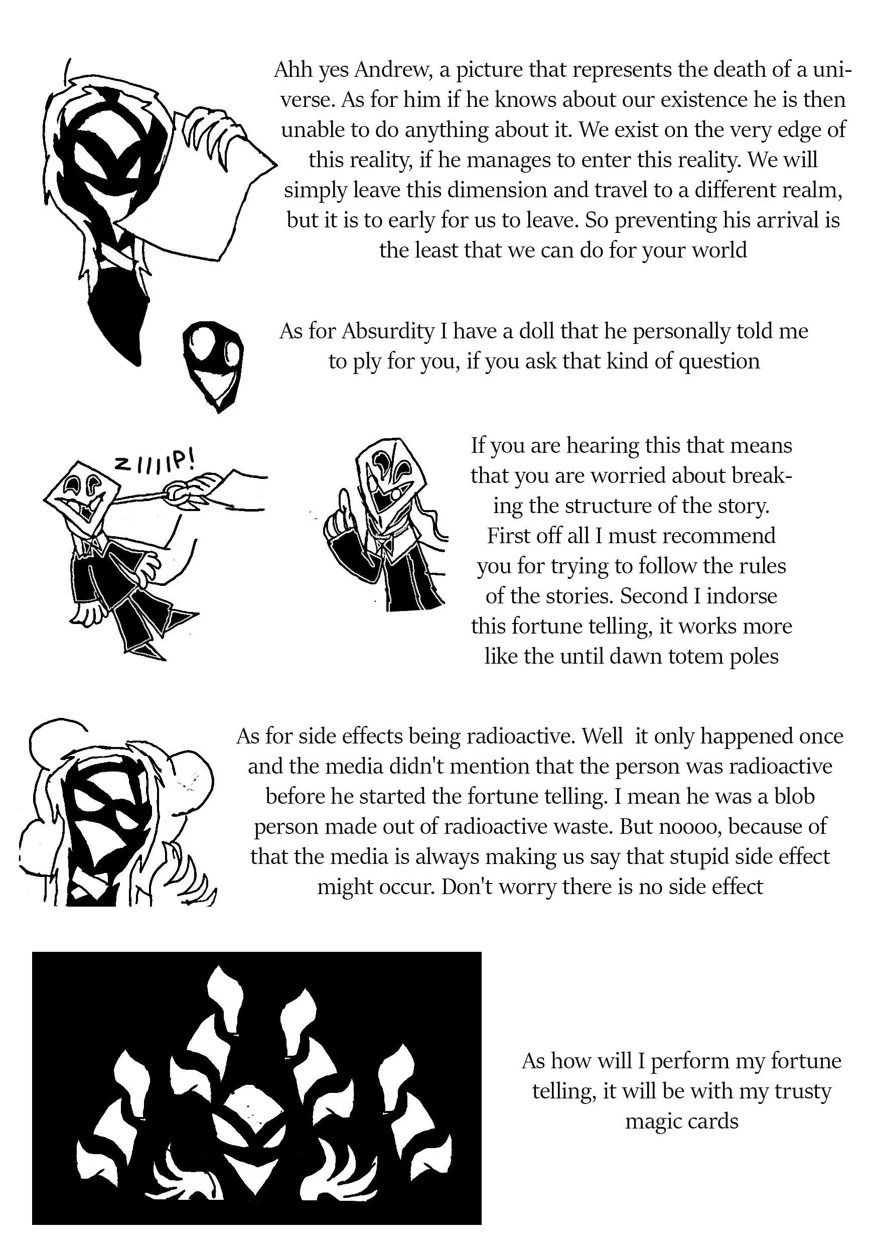 We met up with the FBI Laura, and we told her about the general that did everything he could to keep the army from fighting against the cult, she gave us the news that she activated 93's bomb. After we left, we were being stalked by someone, but before we could deal with it, Rabbot came up, and gave us a chance to save 93 if we could answer his riddle, or remove Ana's tongue if she failed. We unfortunately did fail, but Rabbot said the answer didn't matter since it was more of a test to see if Ana can respond in dire situations. I discovered I gained some of Falafaf's fortune telling powers, we discovered that 93's bomb is voice activated, and after exhausting all our possible canidates to help remove the bomb, we remembered that there was a certain riot control police officer in another dimension that may currently save her, and luckily enough, he knows about dissembling bombs. We are speaking to him through a weird receiver he got from a person who kidnapped him that was able to communicate with us, and this is where we are now. We are defusing a bomb with his help in some kind of dimensional hopping telephone.