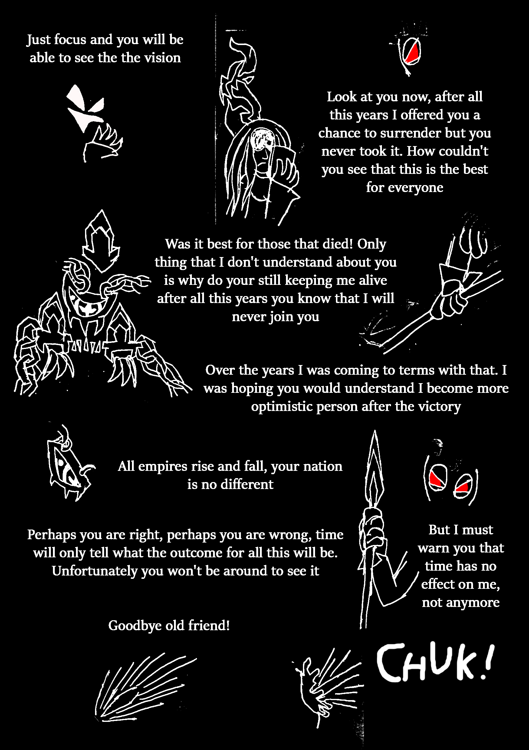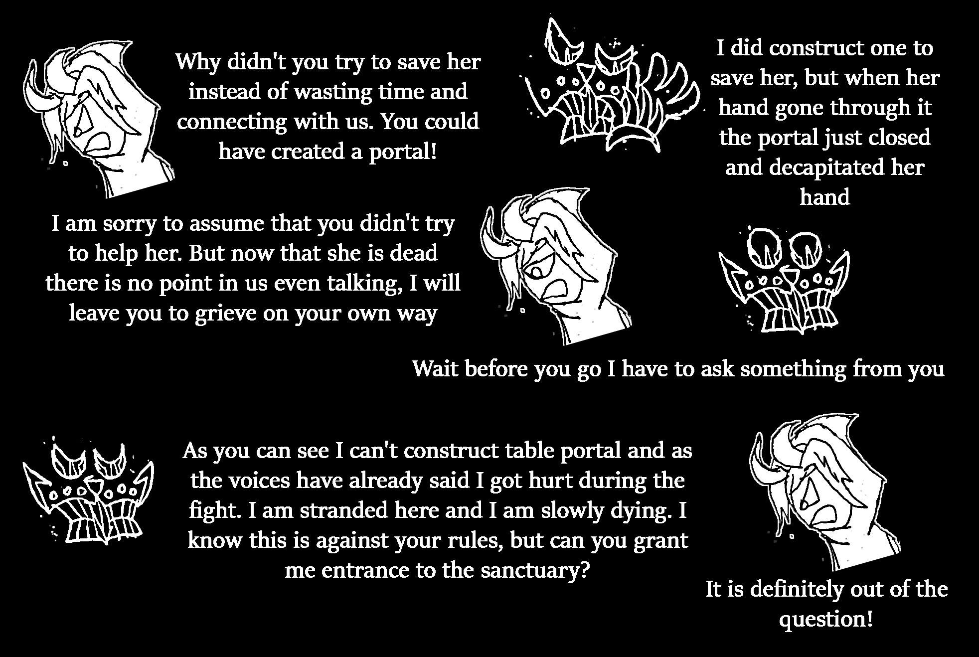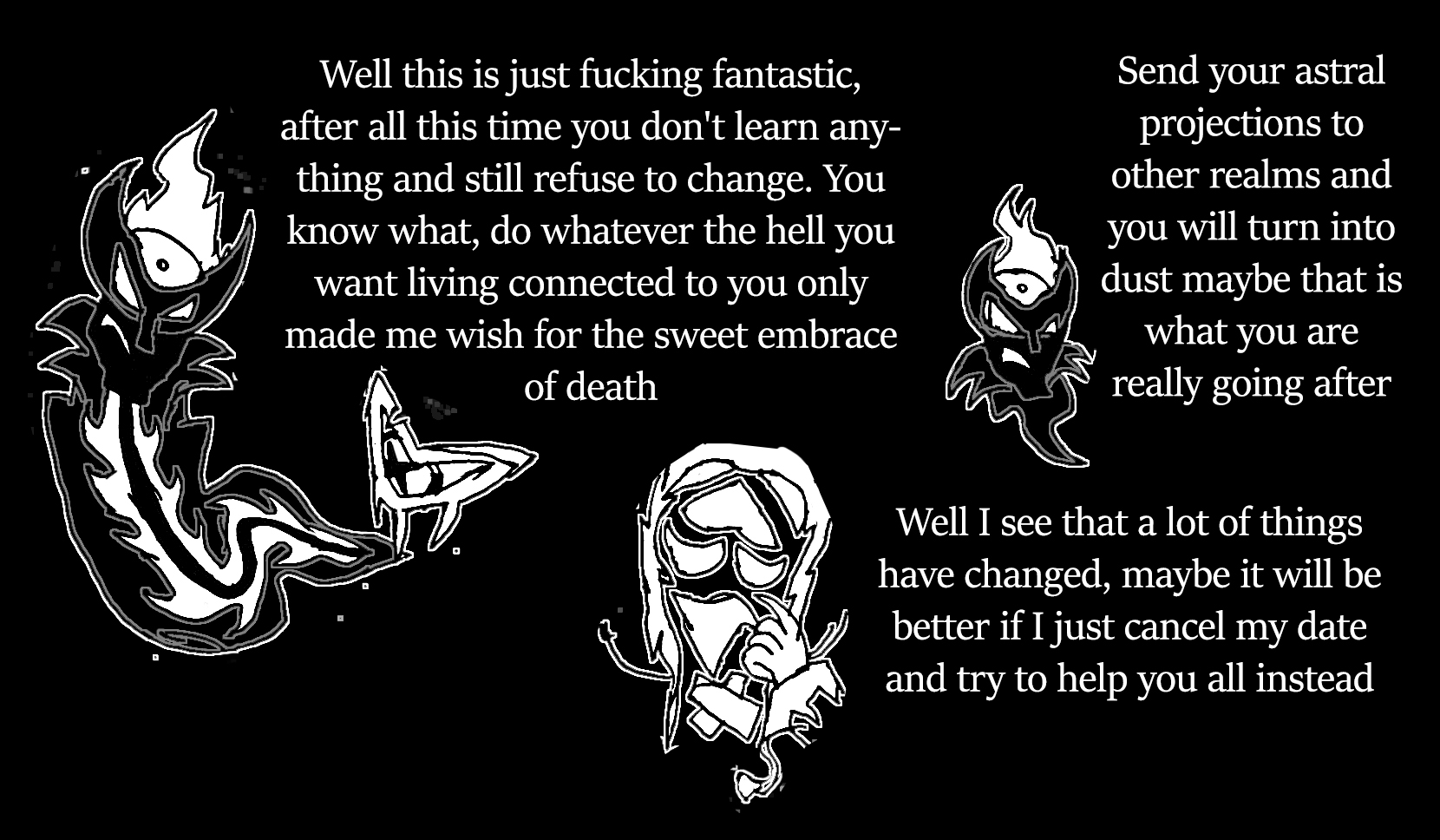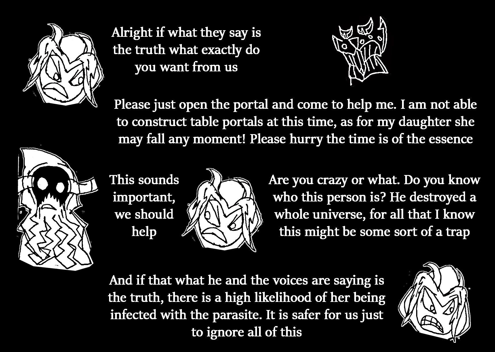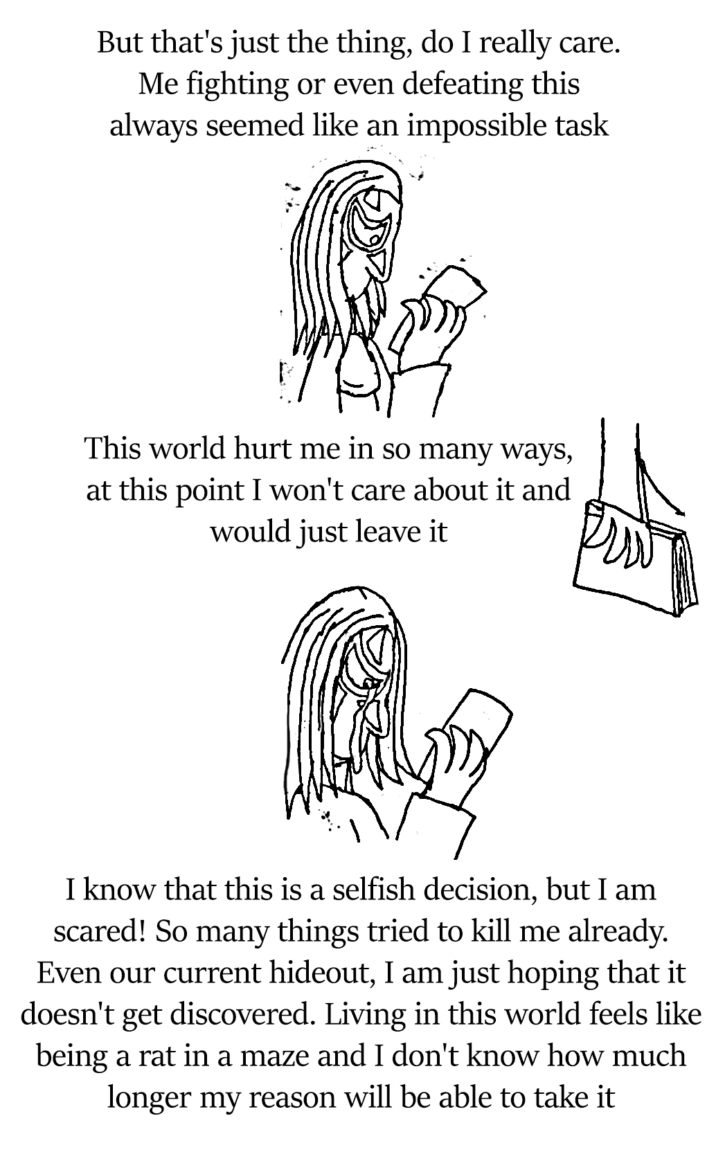 Afterwards, before leaving, and after keeping Ana and AJ from turning into Desolation again with WC's help, 3 triplets of Rosaline's bursted out of the body of Flint, and insisted in joining us. We decided to take them along as they said they can lead us to the main base, and protect them.