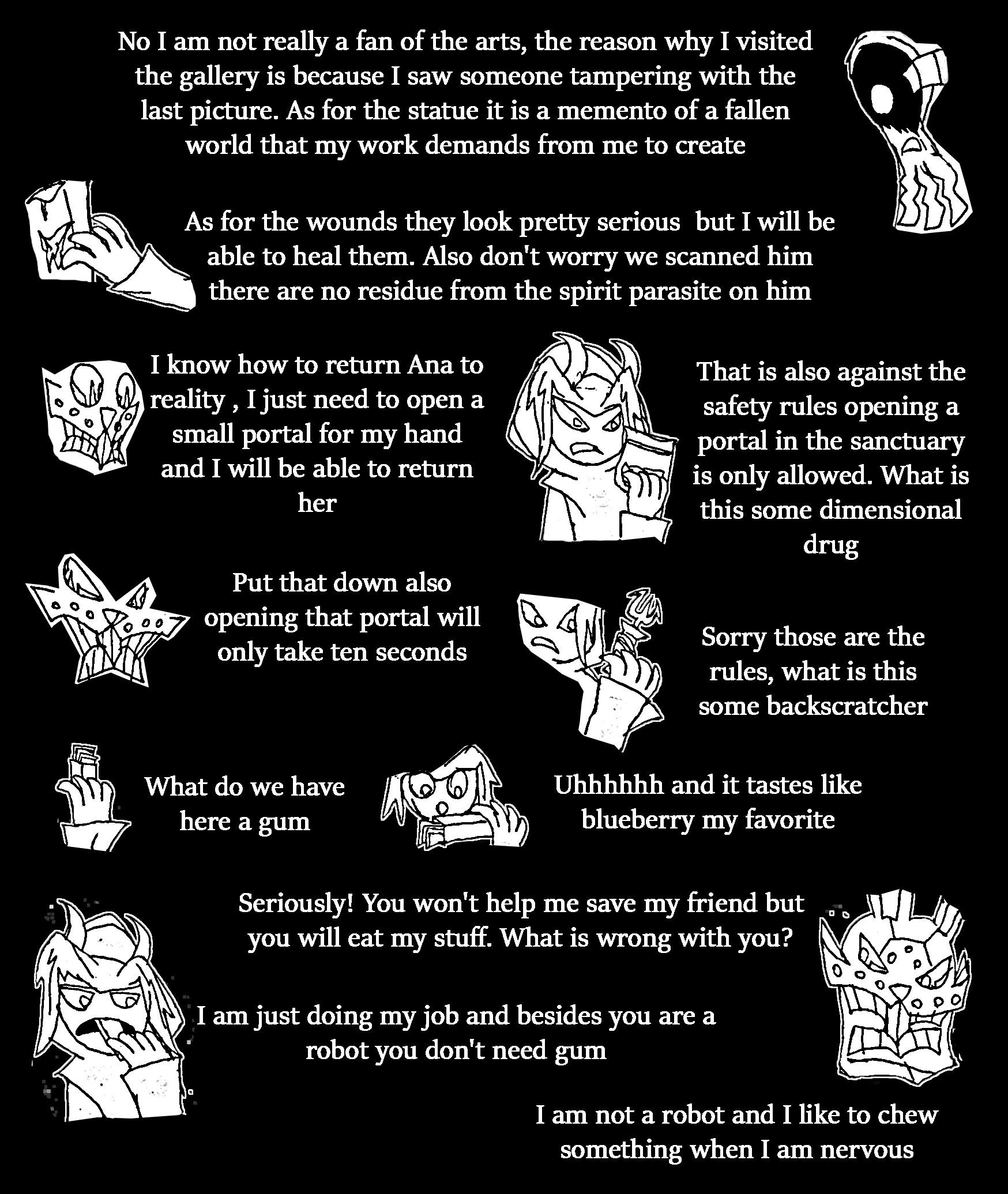 Oh, right, While she is busy, I'll explain what happened in a nutshell when you left for Laura, Dreamwalker.