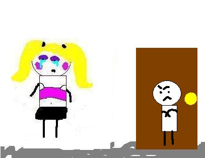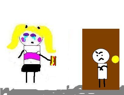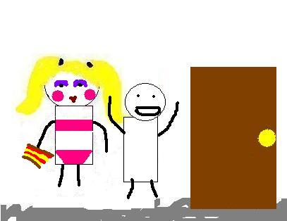 You flash your bra at him and for some reason, he excitedly fixes your make-up. He offers to let you in the bar, but as you begin to walk in he stops you.