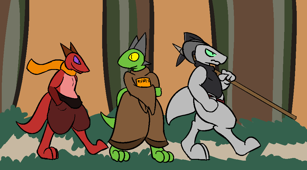 But before we become fully immersed in the legends and lore of this magical realm, we must meet the heroes of our tale! These three heroes are Kobolds, simple lowly little lizard creatures that may or may not be related to dragons. They are common denizens of the land, found just about anywhere, unlike the greater species. But these three are special. From lowly beginnings, they have set off in search of adventure and fortune, each for their own reasons. They have nary an inkling of the journey they are about to embark on, nor how important they will become to the world. Who are they?