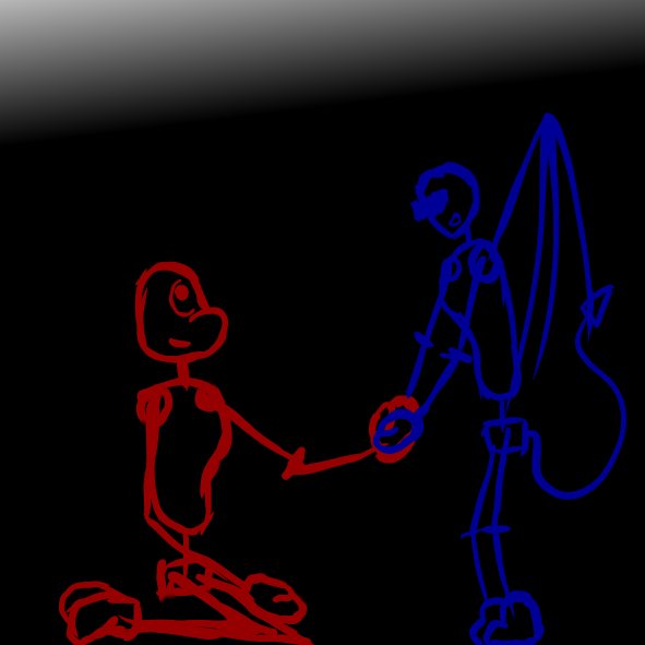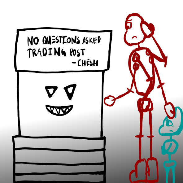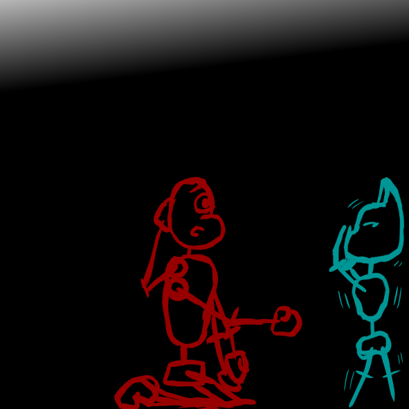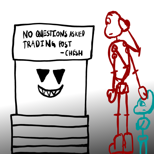 Kit thinks about it for a while before nodding. They look scared, but they always look scared. Besides, they seem to feel a lot better once Chesh gives them hands, feet, and some outlines. He even gives them an eye that matches the one they already had.