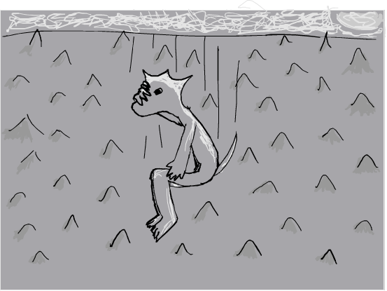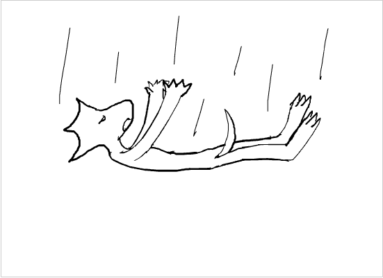 >I'm closer to the ground now, the plants are easier to make out. They look like... huge ferns, along with some trees. If I try to fall through the trees, they could cushion my fall, but I might get stabbed by the branches. If I aim for the ferns, they might not be big enough to slow me down.