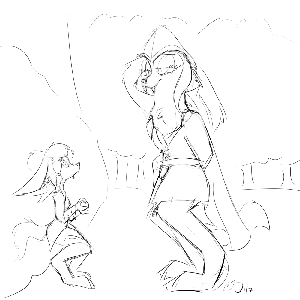 You hunch down to seem smaller and clasp your claws together, and try your best to conjure up the look that always got you an extra sweet cake during dinner time in your tribe. "My name.... ees Kestrel," you say, trying your best to speak clearly, and trying not to stumble over your words.