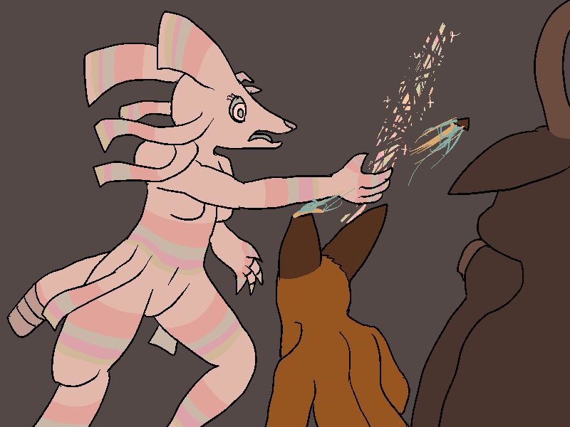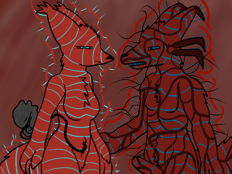 "And then there's Kalka, female, and not sure what her species is. She's quiet. Doesn't have much of a stored history. Doesn't talk. A little like you, red fox, without the effort to bridge the gap. One time Kalka and Foi were in the same area and, just as they were about to trade blows, Kalka just... disappeared. Not sure how she did it. Foi was sleepless for about two days before she couldn't continue. Kalka seems to have been made for combat and is having a hard time adjusting to life without clearly designated enemies. She doesn't seem to want to slaughter indiscriminately. I once asked her why she was here, and she drew a... well, actually, that information isn't free for me to distribute. Still. We've offered her structure and assistance in her goals, and she's politely declined. She knows Foi and Ekin exist and I've seen her watching them from afar. Either way, I have little patience for vigilantes acting outside of sentinel rules."