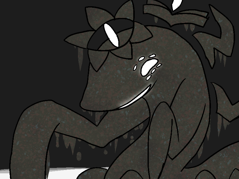 "Ekin, male, crocodiline. Not sure how he ended up here. Last of his species but I mean I already said these were all last-ofs. Naked last-ofs prowling this waste. Animals, all of them. ...no offense to present company although I certainly have noted a correlation between civilisation, sophistication, and complexity of apparel. Still. Seems determined to find a mate for no reason other than feeling obligated to somehow save his species. I personally had a conversation with him where I mentioned being the last of your kind means your species is already gone, and then he said he'd find a way with or without sentinel help. Personally I've noticed he is absolutely infatuated with Foi. But he's absolutely distraught over what trying to breed with her would cause. I've seen him curled up weeping over his conflicting desires to do no harm and his burning lust and desire to procreate with a female he knows would certainly die in the process. I'd have more sympathy for him if he hadn't kept shutting down every outside offer of help. I don't know if he's ever even talked to Foi to begin with! What ridiculous mental prisons individuals construct for themselves. Maybe he prefers his pent-up lust to the possibility of rejection. I don't have the capacity for such drives so all I can do is theorise. Probably copulates with any vaguely attractive crystal deposits when no one's looking. Oh, right, also he has some sort of affinity towards smoke and flames."
