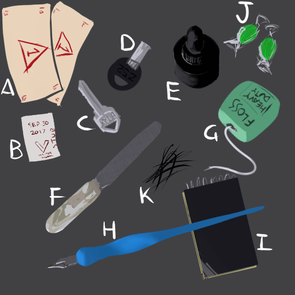 1x Loose black fur, smells of ink (Eurydice's)
