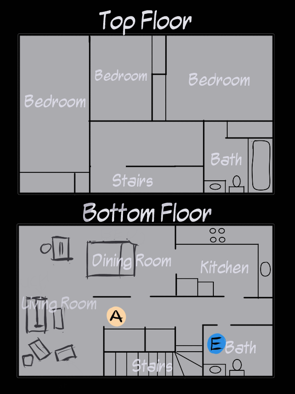 So far, you have only been to Dining Room, Living Room, and Kitchen. However, you have NOT really examined or investigated them yet. You were... distracted. You know that there's a bed and a computer and computer desk in the Dining Room, and the Living Room has some chairs, a couch, and the coffee table.