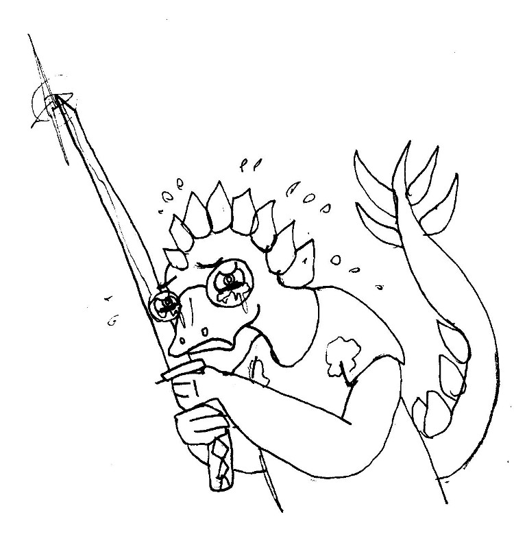 You step towards him, and he threatens you with the sword. You easily push it aside. You open your nightmare hole and give him a friendly lick.