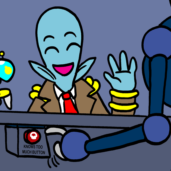 LOL. They have a "they know too much" button under the desk and we almost got it triggered on us.