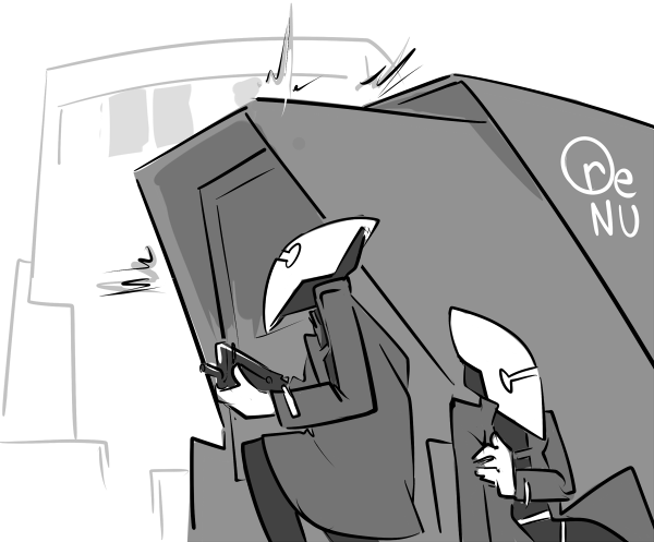 Echo took a hit to her chestplate, setting off a shieldpack charge. She’s wheezing pretty bad and is leaned up against the cruiser next to you while you assess the situation. The vehicle rocks slightly as another potshot thunks into it.