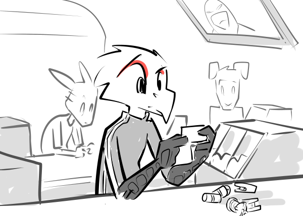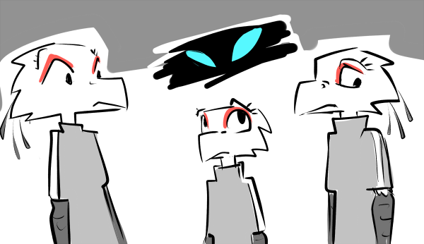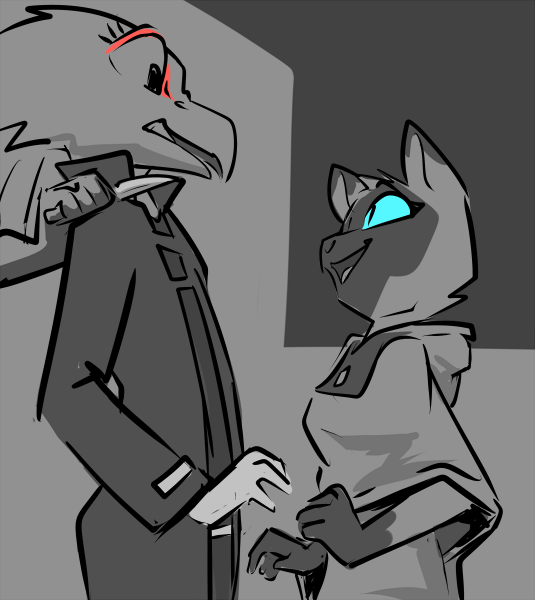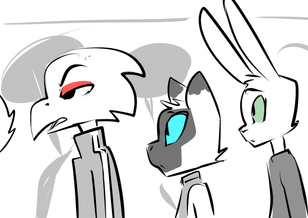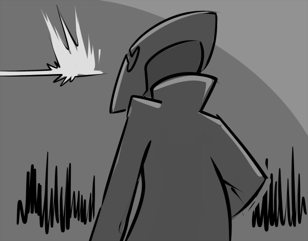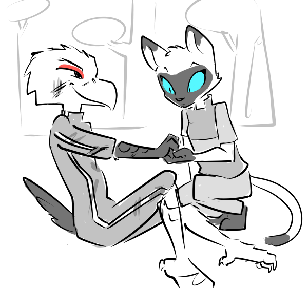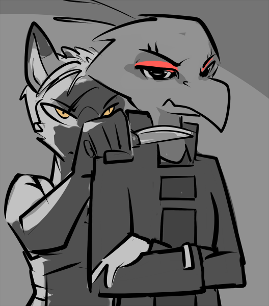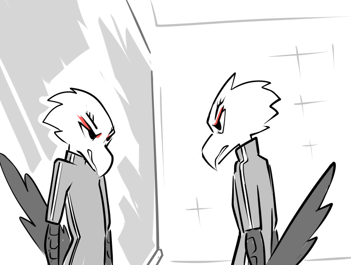 You start to mumble something about being a killer and a soldier. She places her hand on your cheek, gently but with an intensity that makes you feel as though you’ve been slapped. Your beak is swiveled until its facing her and once again the past blurs itself with the present: its dark, you smell fire, everyone else is dead, there’s only you and her. Those eyes, burning with a ferocity that could melt steel, carve their way into you.