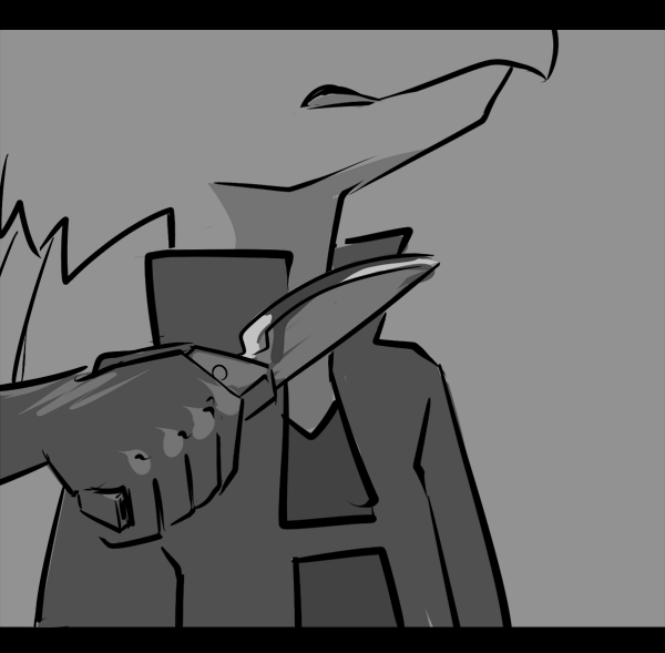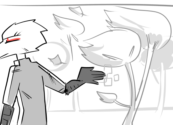 A gentle touch makes you flinch, but a warm hand envelops yours. Soft fingers thread between your brutal, scaled digits and a shuddering sigh rips itself out of your chest in an uncontrollable wave of emotion. “You’re not a monster. You are whoever you want to be...” Her eyes float in the dark, staring into you and for a moment you’re haunted by the smell of smoke and sound of gunfire. “Who are you?”