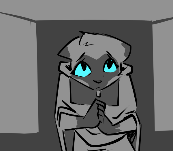 You take the snack and hold it in your lap, hungry but unable to bring yourself to eat. “What does it matter? I'm a monster...a nobody. I don’t even have a name.”