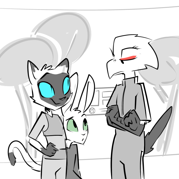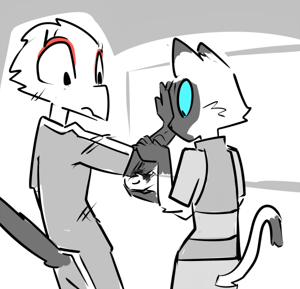 There’s a knock at the open door and the girl, Sam, steps in cautiously. As angry as you’ve been at the situation, you just sag on the mattress; barely registering as she sits next to you. There’s a crinkle of plastic as she pulls a slightly squashed protein bar out of her jumpsuit and offers it to you.