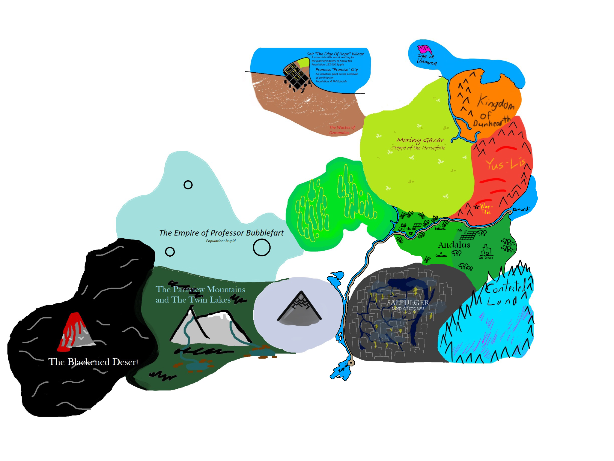 The lands of Andalus is the home of the Corbel. The Corbel are creatures created by alchemists of a long lost civilization that once occupied Andalus. Andalus is divided into two regions, Calibri (light green) and Cambria (dark green). Calibri is the a temperate region just outside the strong alchemical influence of the Tower, while Cambria is the rest of Andalus where the influence of the Tower is strongest.