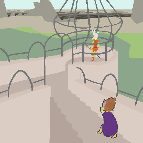 If I want to get out of here, the gate is straight ahead, but guarded by several men on both sides. There's also a less guarded staircase to the top of the castle wall a little ways to the left, but it's still guarded, and getting down would be a probable issue.
