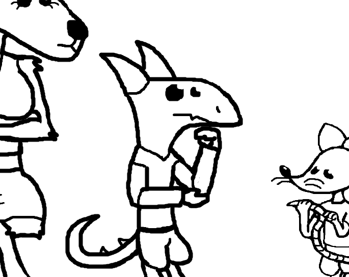 Scurba glances back at us for a moment. Her eyes land on Mililie, who's disembarked from her perch upon my head and is now standing next to me. Scurba gives a small smile and wave to Mililie while mouthing "Hi!" and Mililie returns the wave with a smile of her own. She looks at me for less than a second before quickly turning back to her task. Hmmm. I turn my attention back to Boldi.