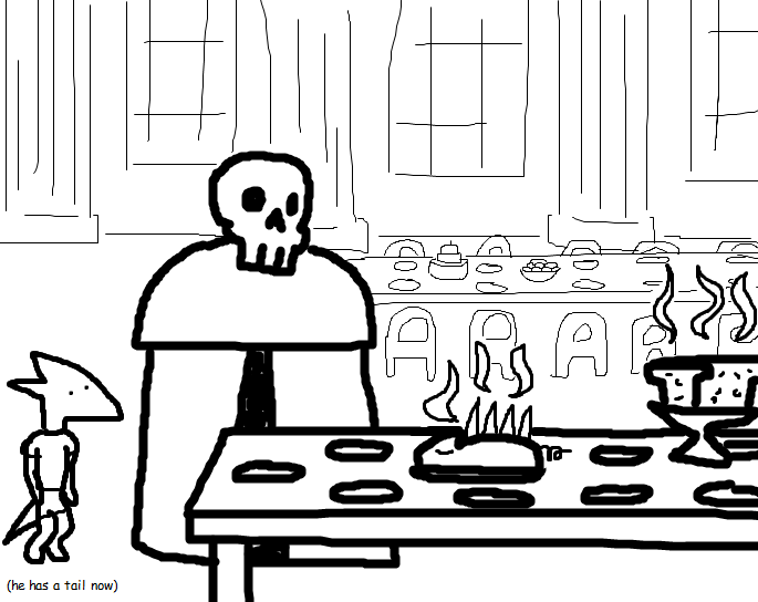 "You see, Mililie here," I gesture to the little kobold beside me, who squeaks a tiny 'Henlo!' at Boldi, "was to be one of the greeters for the guests. However, she has a bit of an speech impediment that she's still working to overcome."